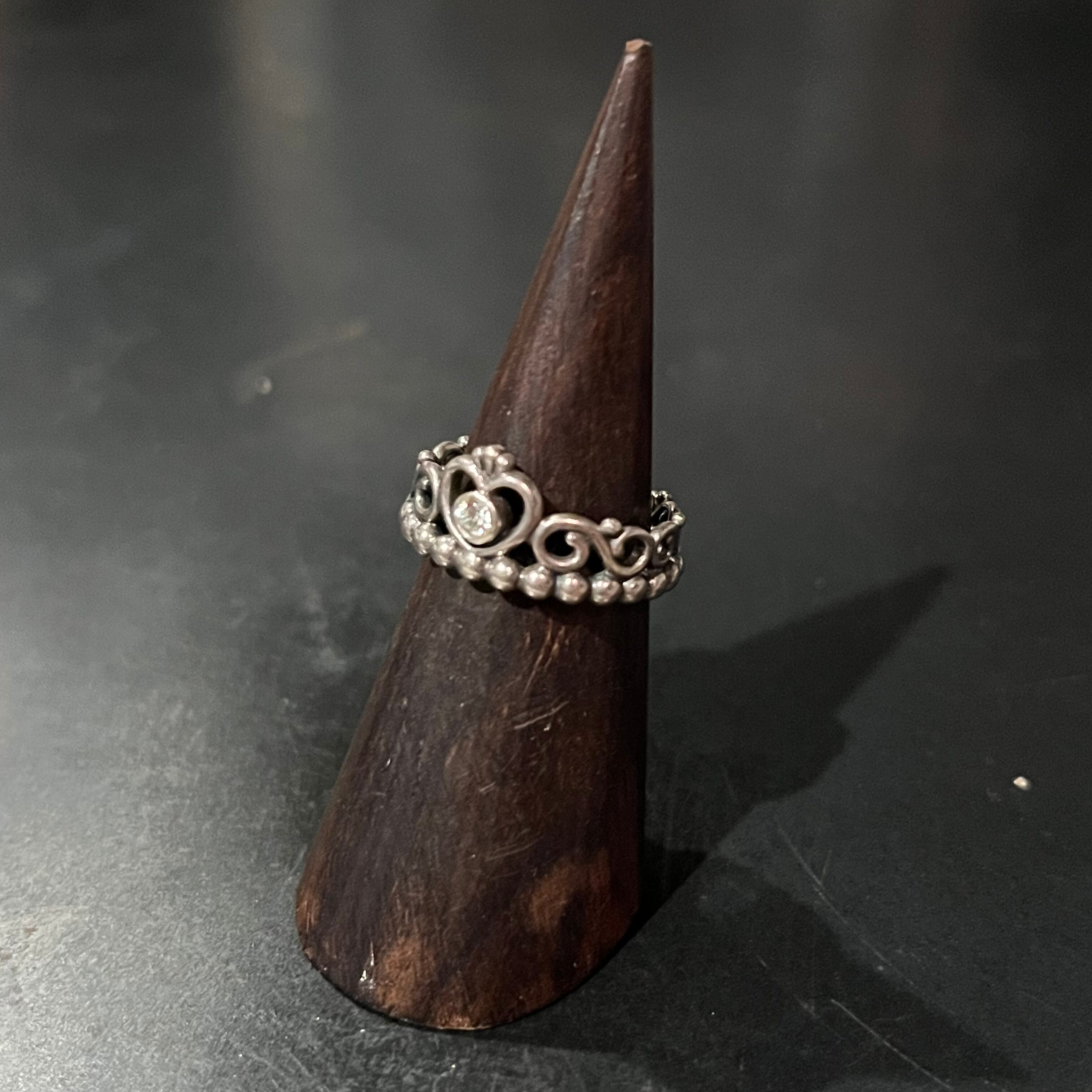 海外で買い付けたヴィンテージティアラモチーフプリンセスデザインのシルバーリングです。