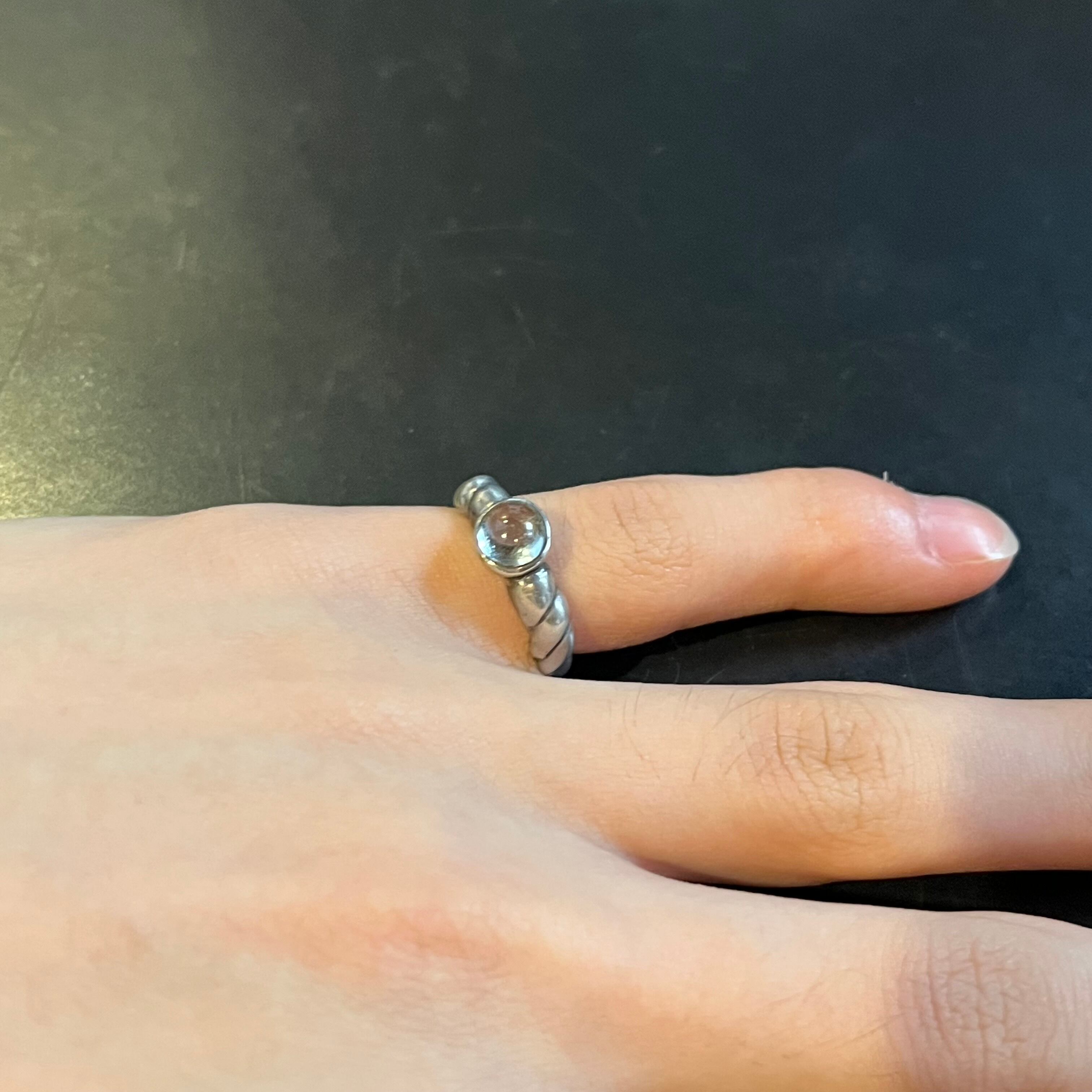海外で買い付けたクリアストーンロープデザインのシルバーリングです。