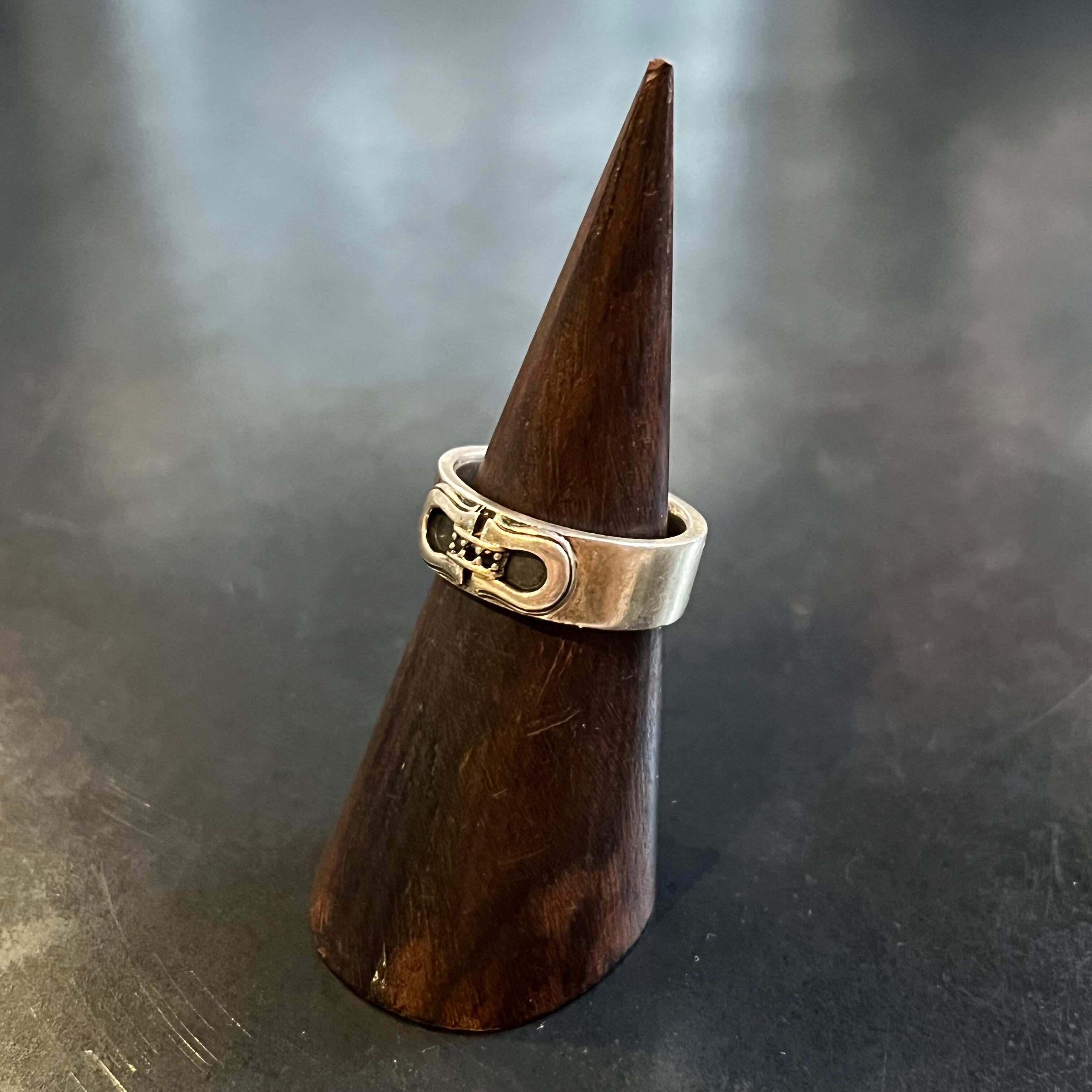 海外で買い付けたダブルホースシューモチーフデザインのシルバーリングです。