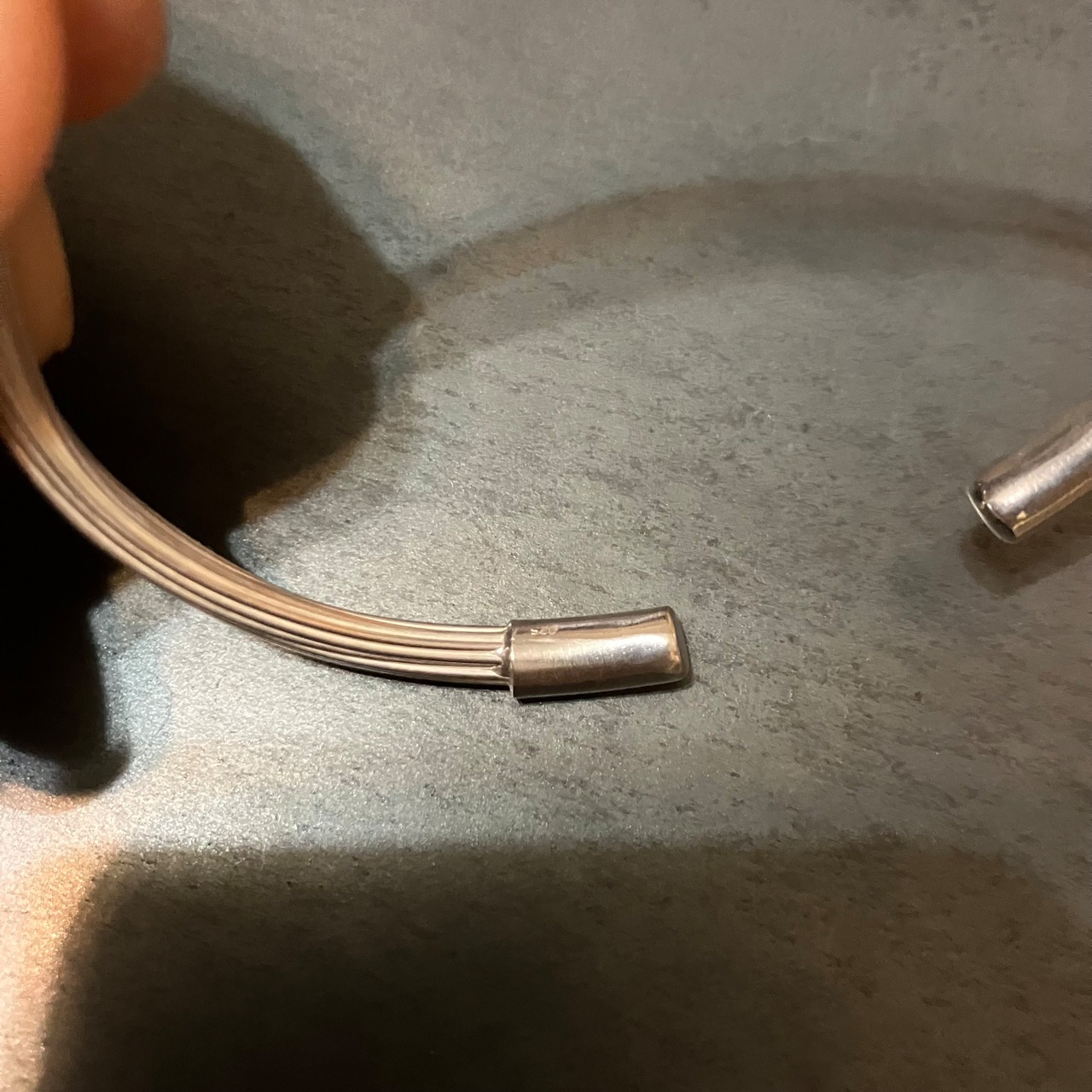 海外で買い付けたワイヤーデザインのシルバーバングルです。