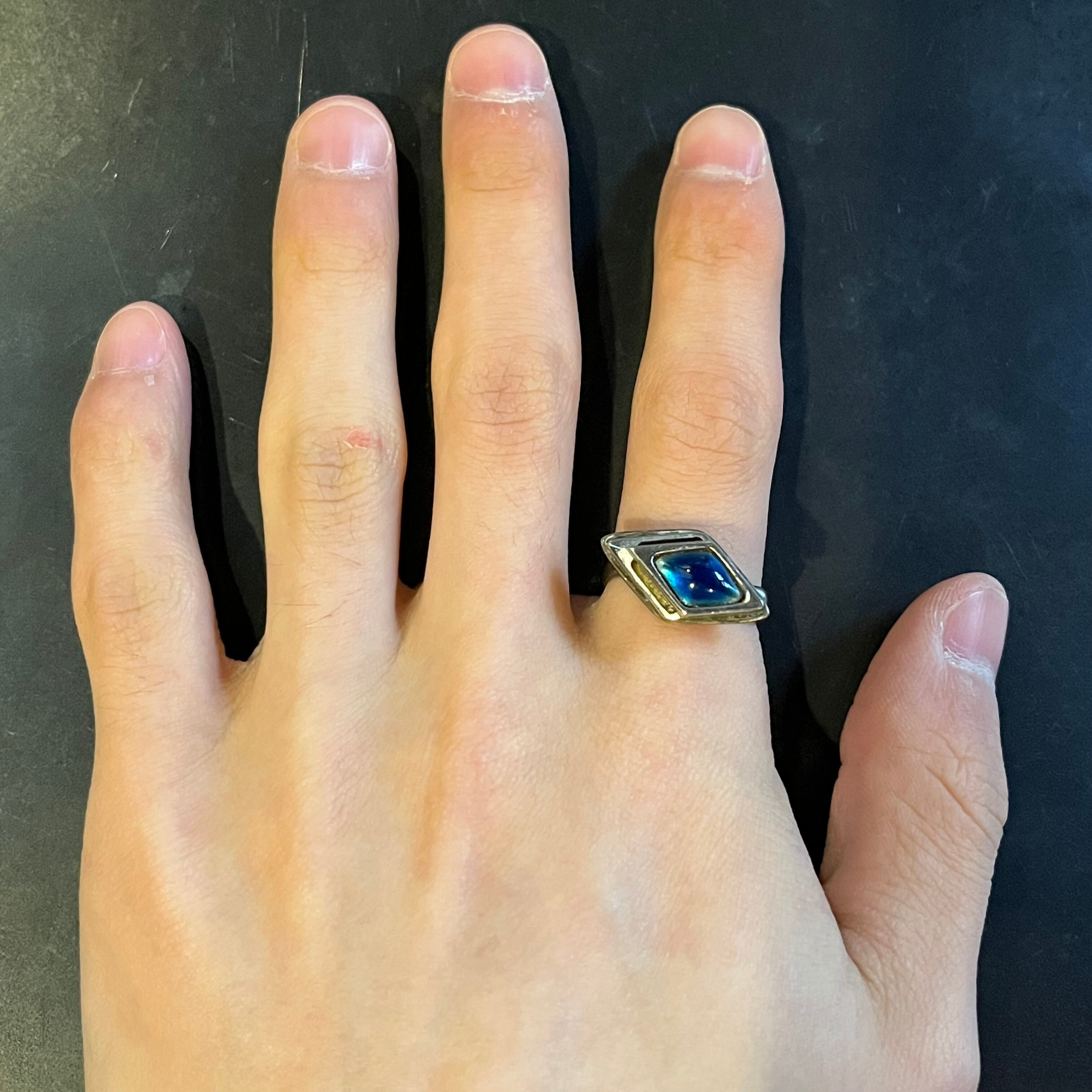 SILVER925 BLUE STONE UNIQUE DIAMOND DESIGN RING/シルバー/リング