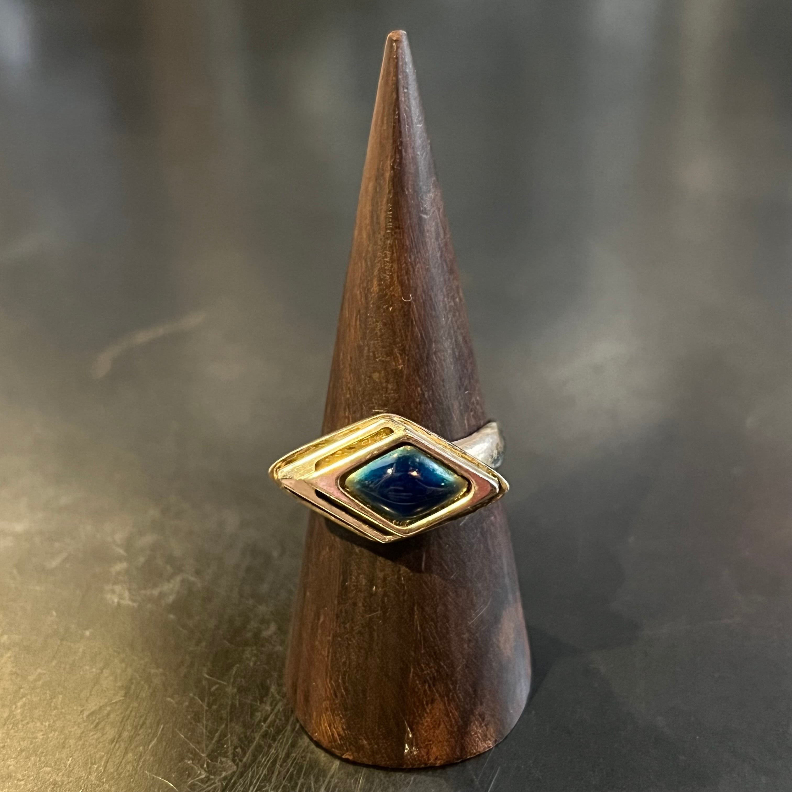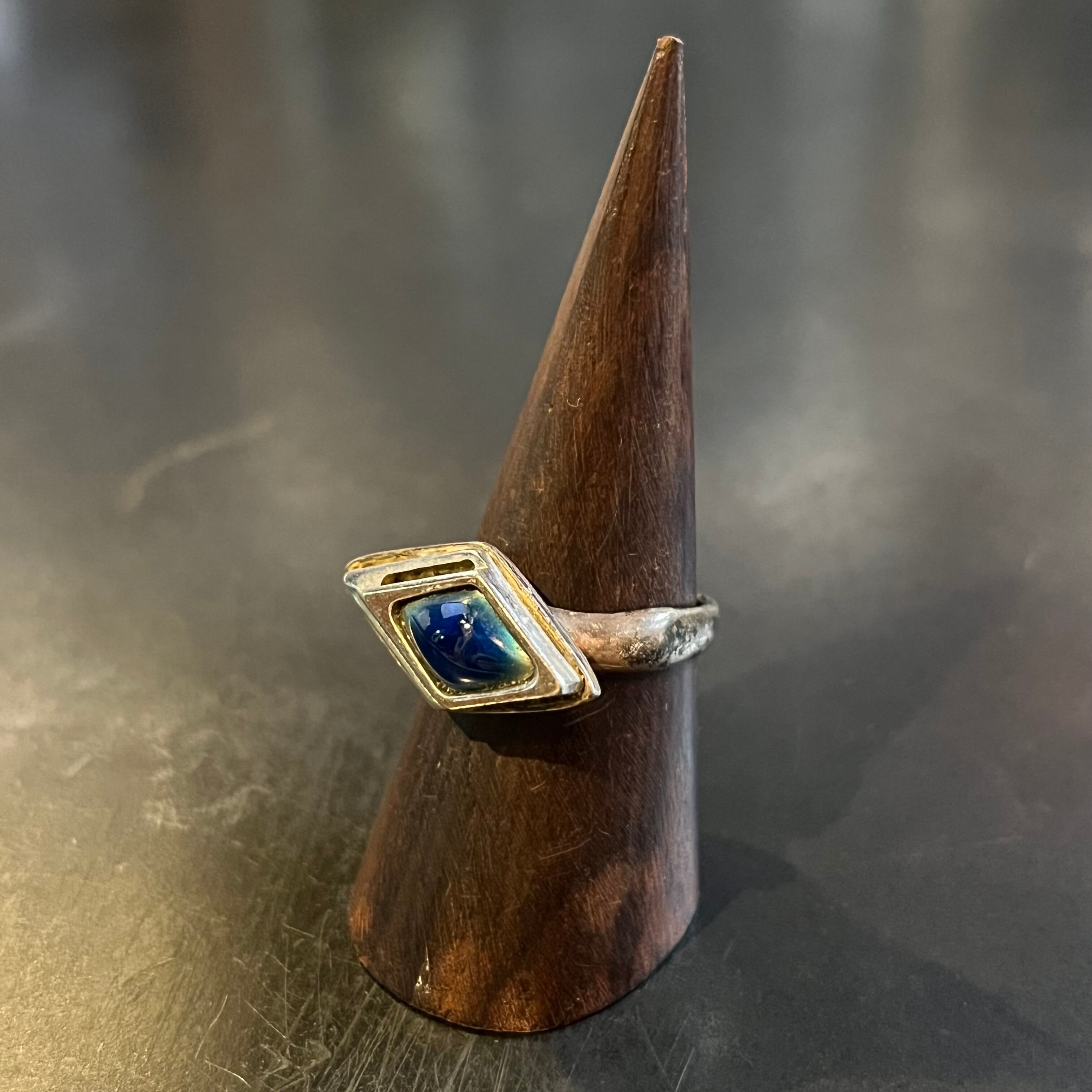 海外で買い付けたブルーストーンユニークダイアモンドデザインのシルバーリングです。