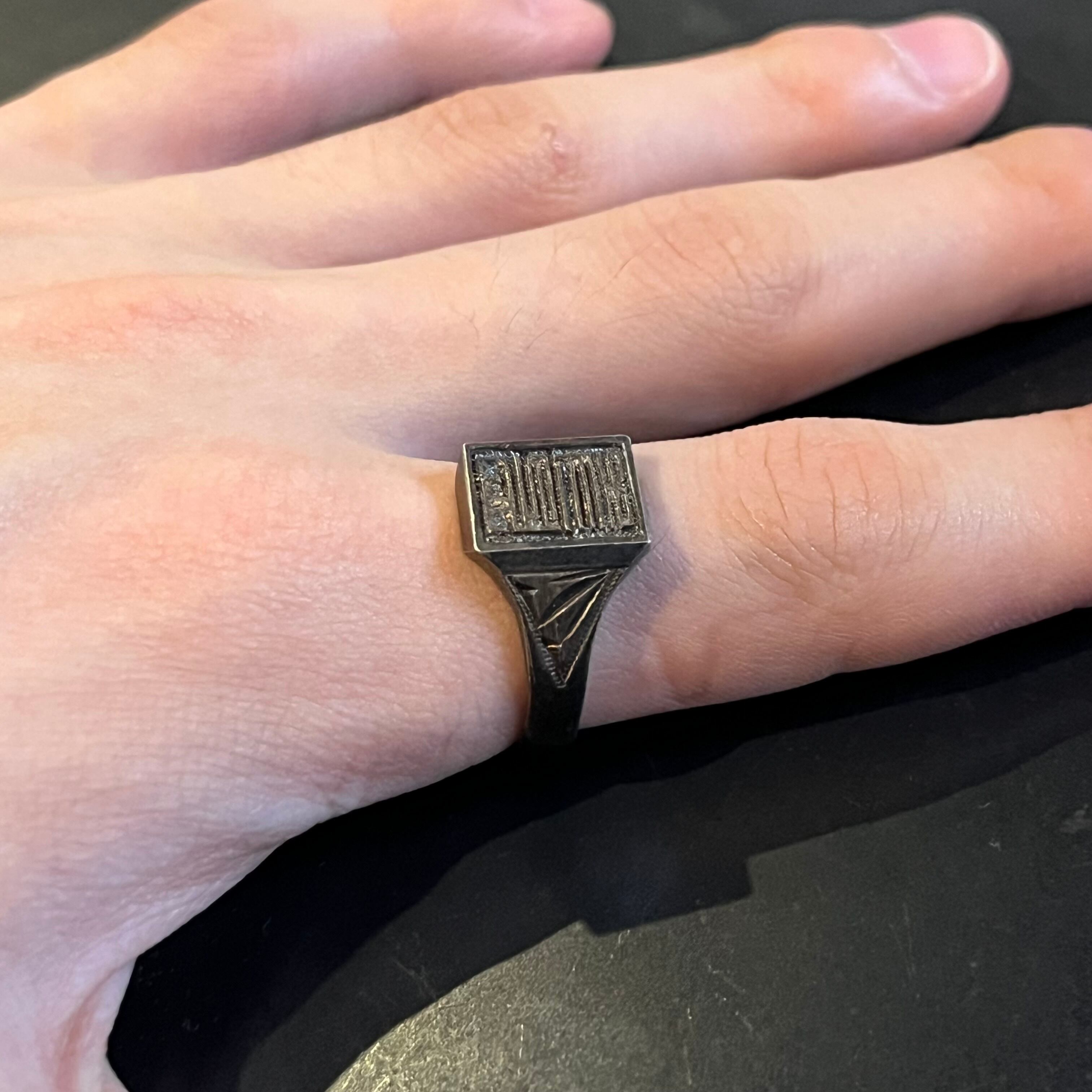 海外で買い付けたオールドキャラクターフォーム・旧字体・エングレービングデザインのシルバーリングです。