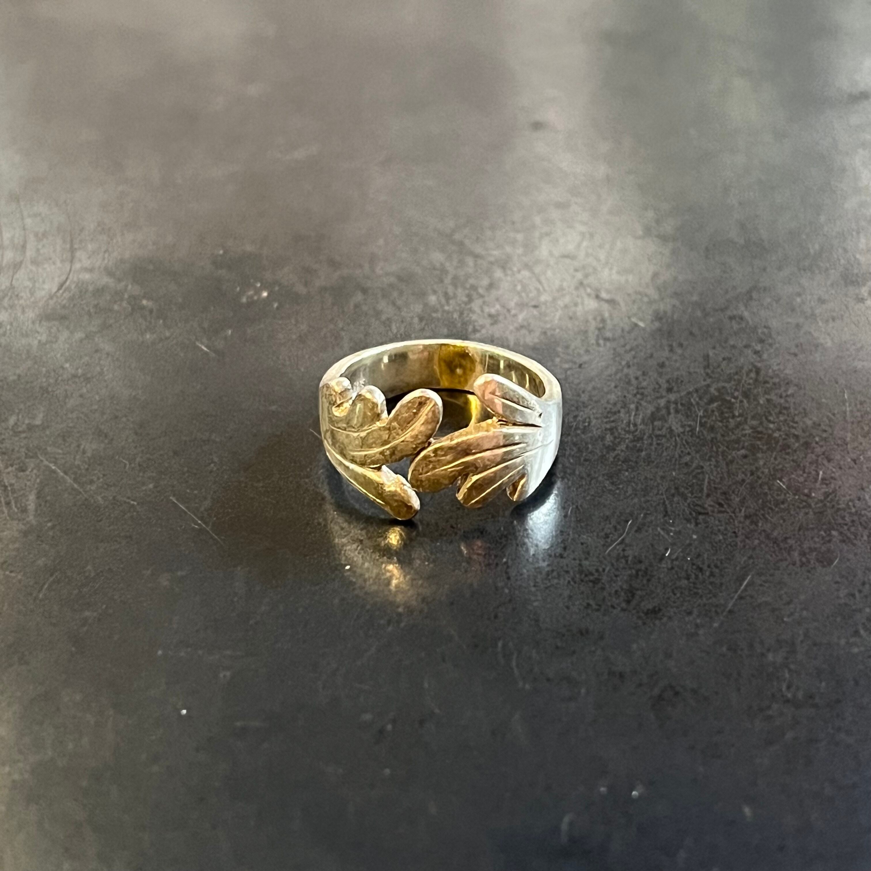 海外で買い付けたリーフモチーフユニークデザインのシルバーリングです。