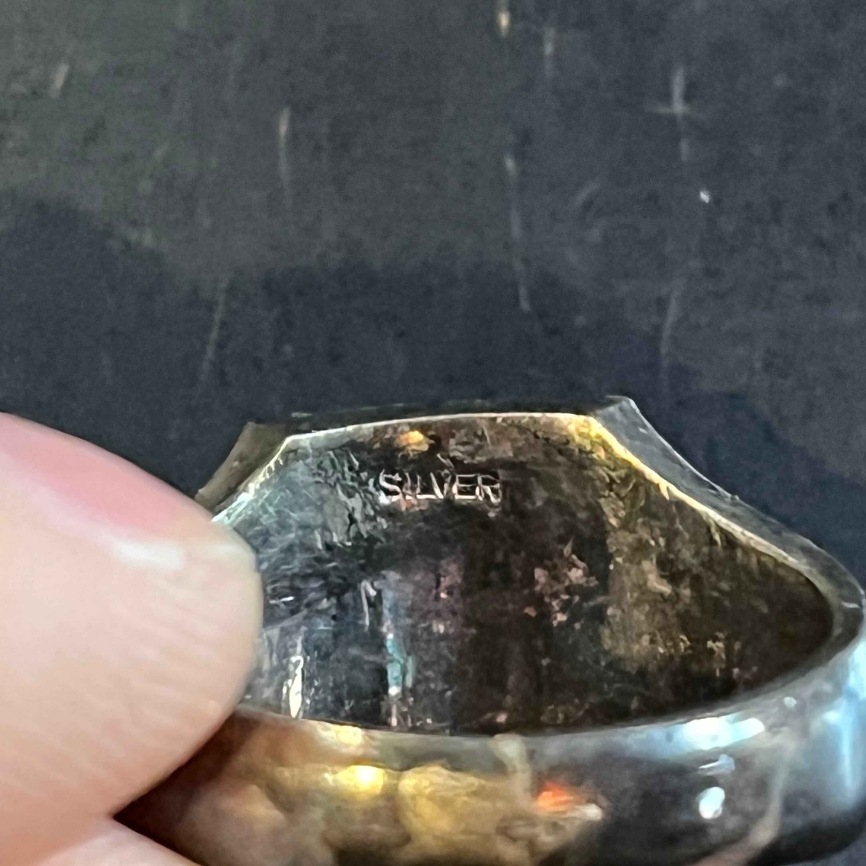 海外で買い付けたオールドキャラクターフォーム・旧字体エングレービングデザインのシルバーリングです。