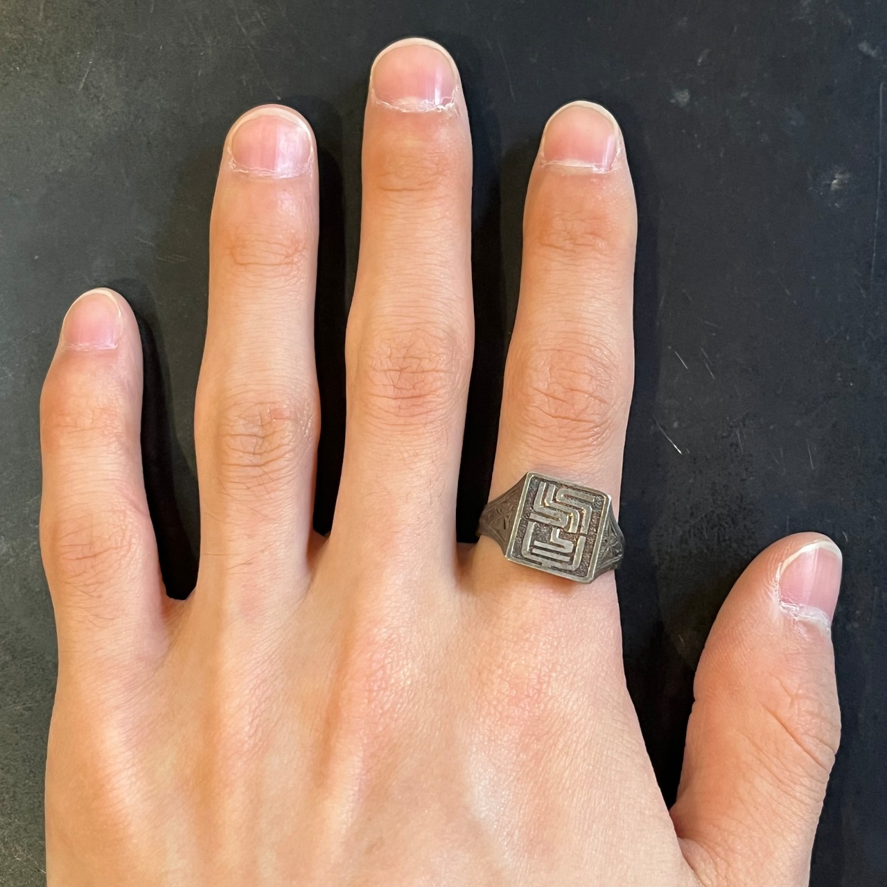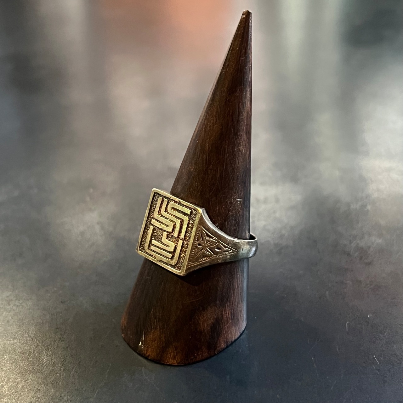 海外で買い付けたスクエアストーン漢字エングレービングデザインのシルバーリングです。