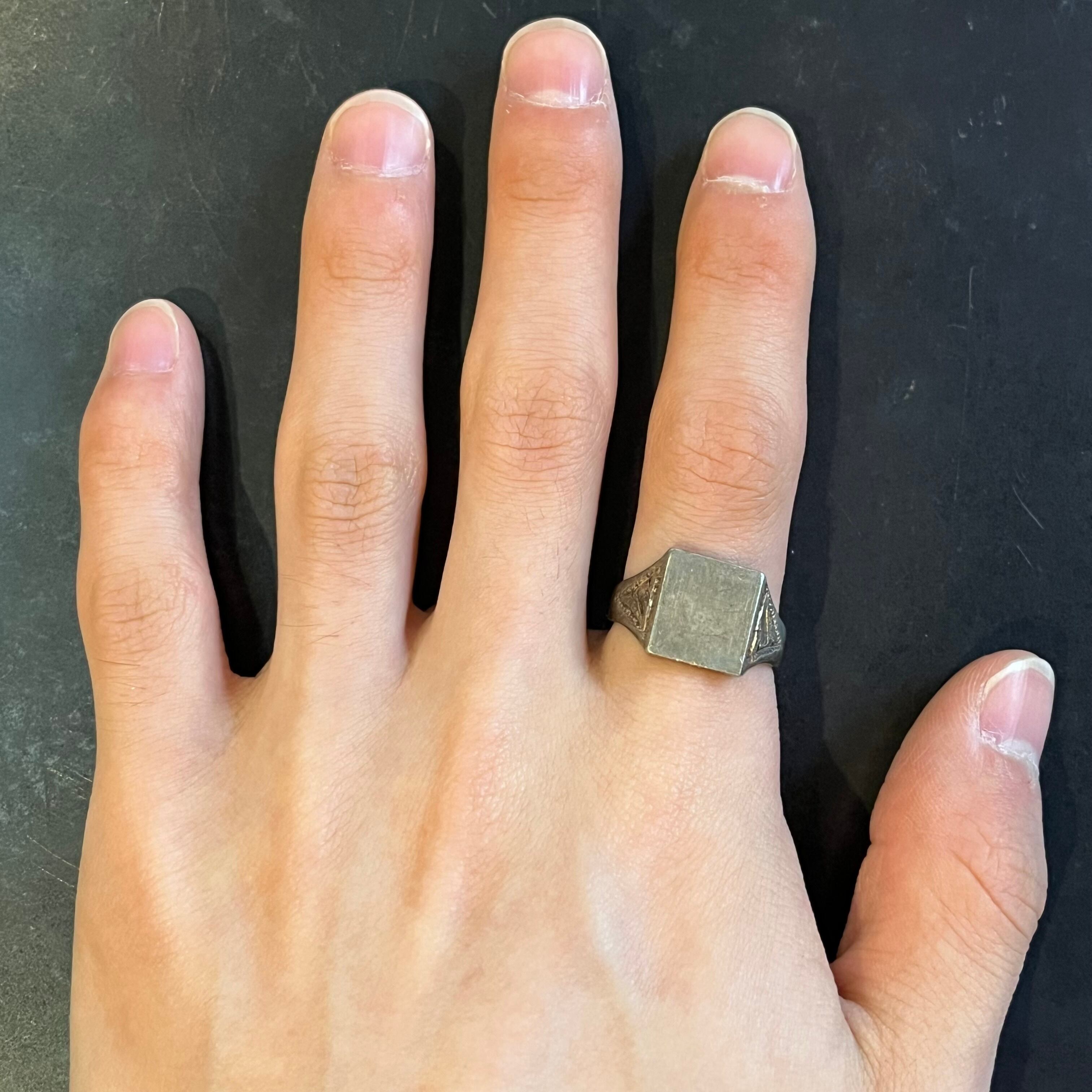 海外で買い付けたオールドスクエアプレーンデザインのシルバーリングです。