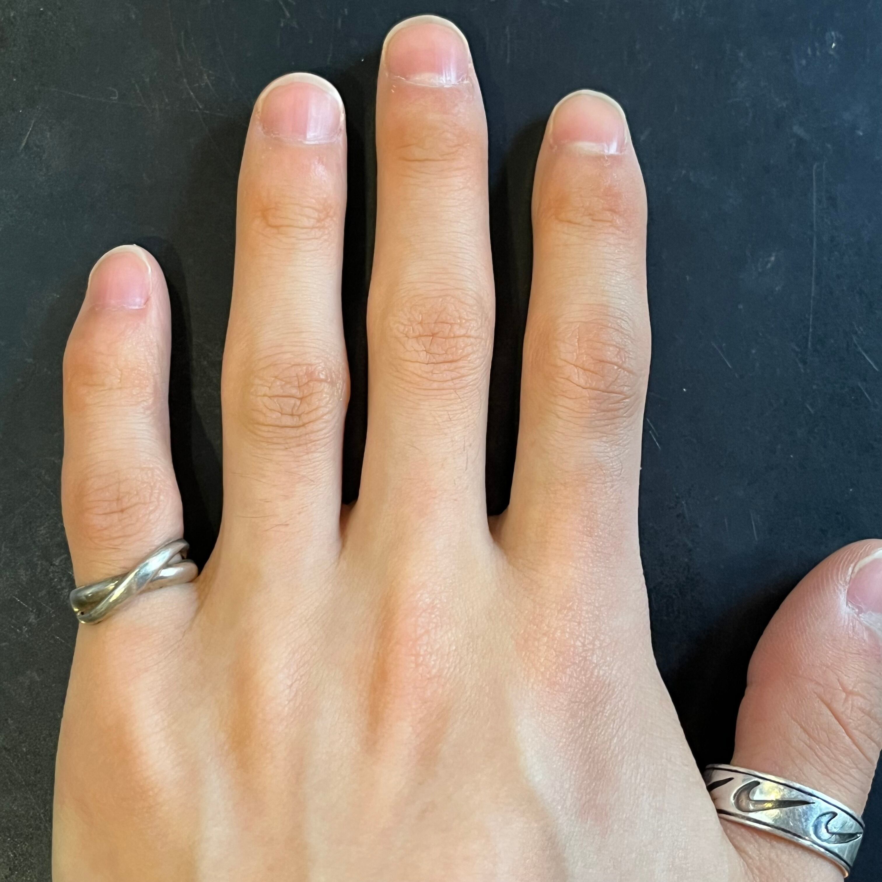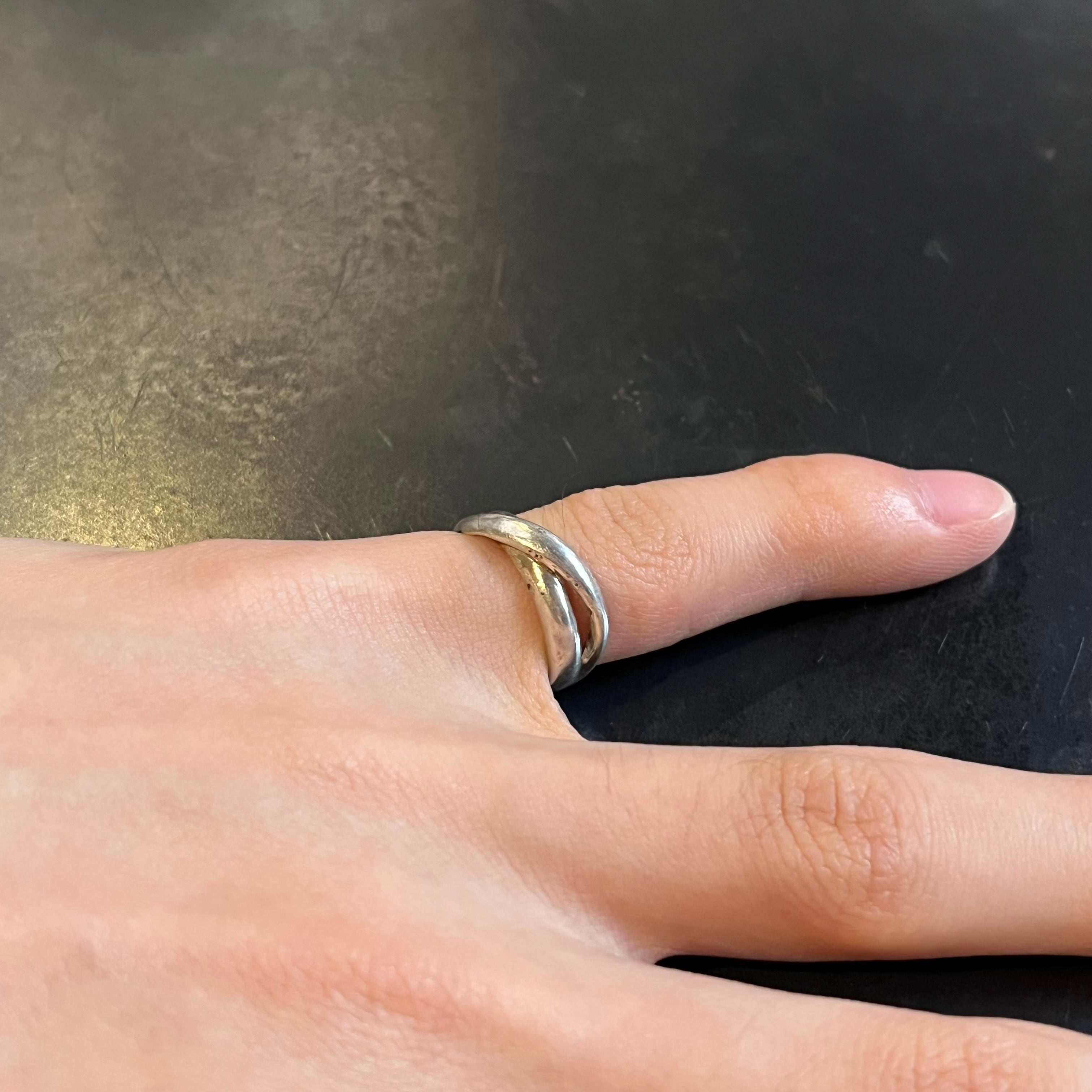 美しい交差を描く2本のラインが印象的なデザインで、流れるような滑らかなラインが、指元をさりげなく引き立ててくれます。