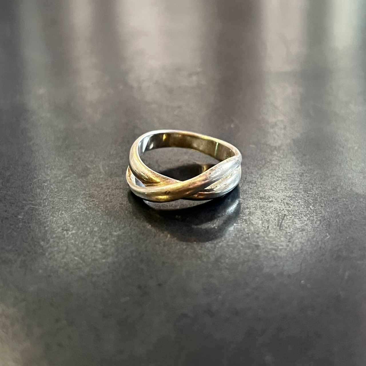 海外で買い付けたクロスオーバーツイストデザインのシルバーリングです。