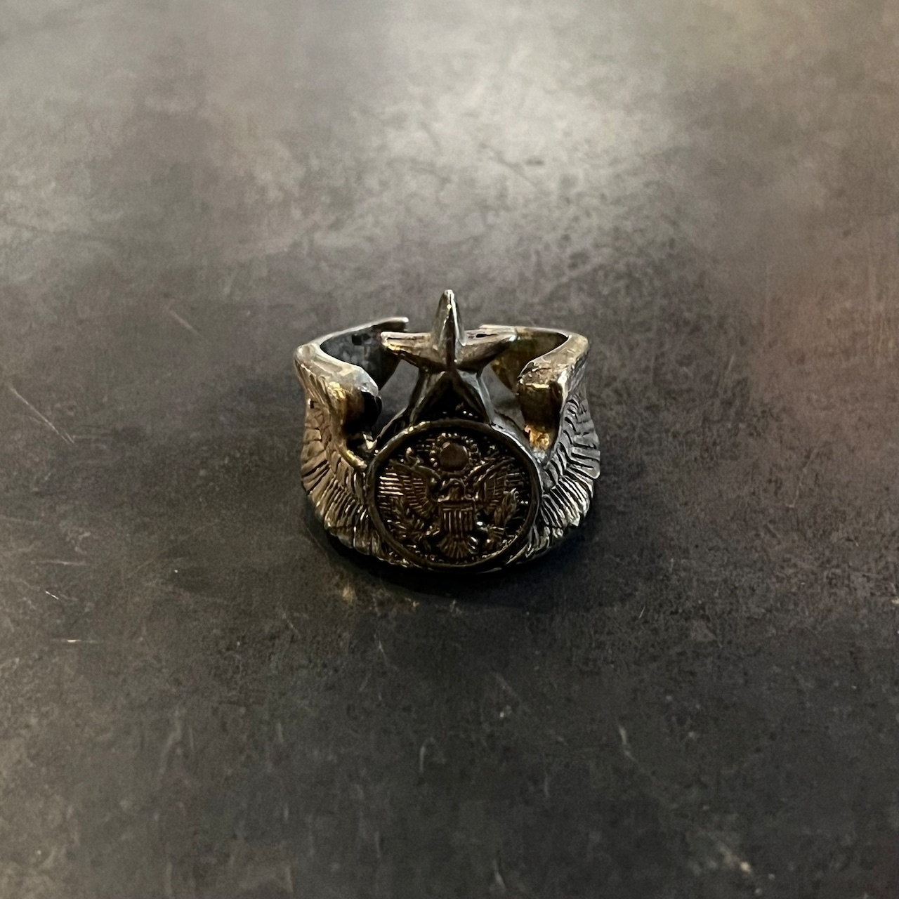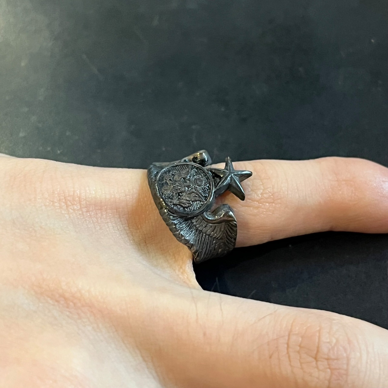 海外で買い付けたスターモチーフ・ウイングデザインのシルバーリングです。