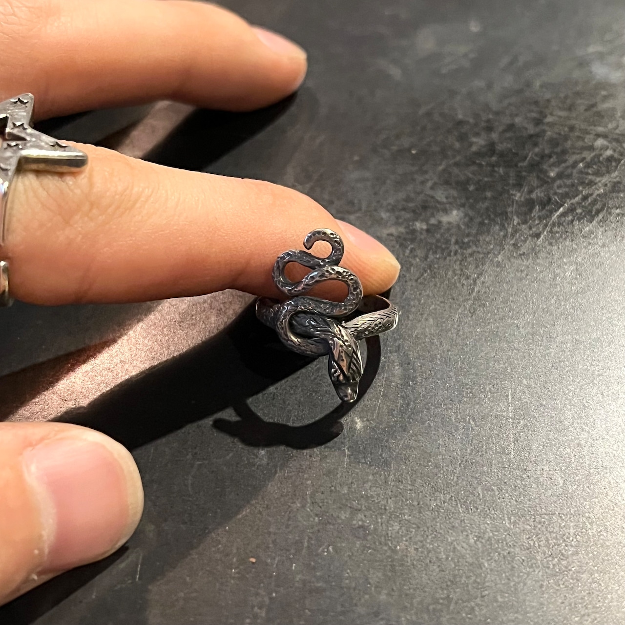 海外で買い付けたスネークモチーフアニマルデザインのシルバーリングです。