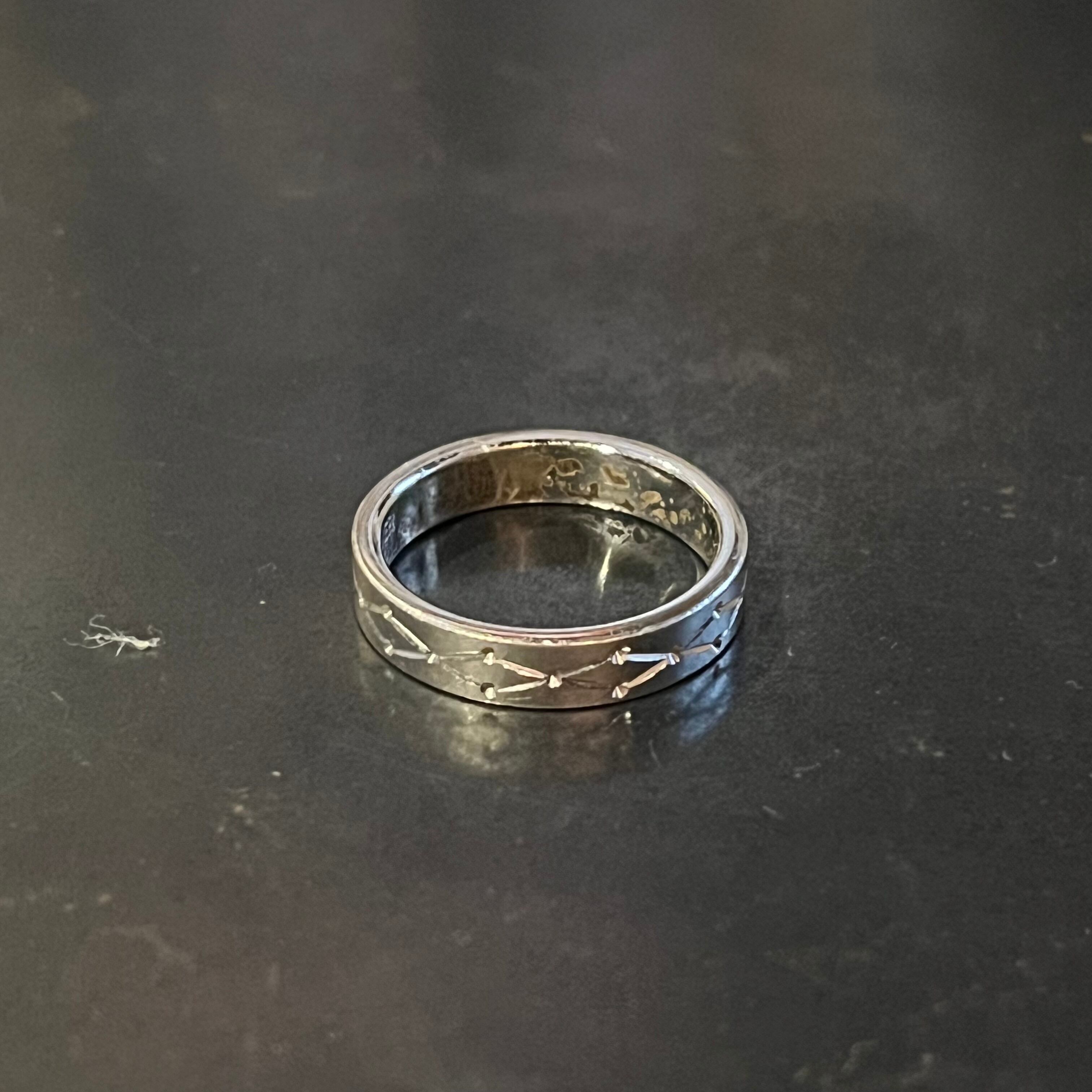 海外で買い付けたクロッシングカッティングデザインのシルバーリングです。