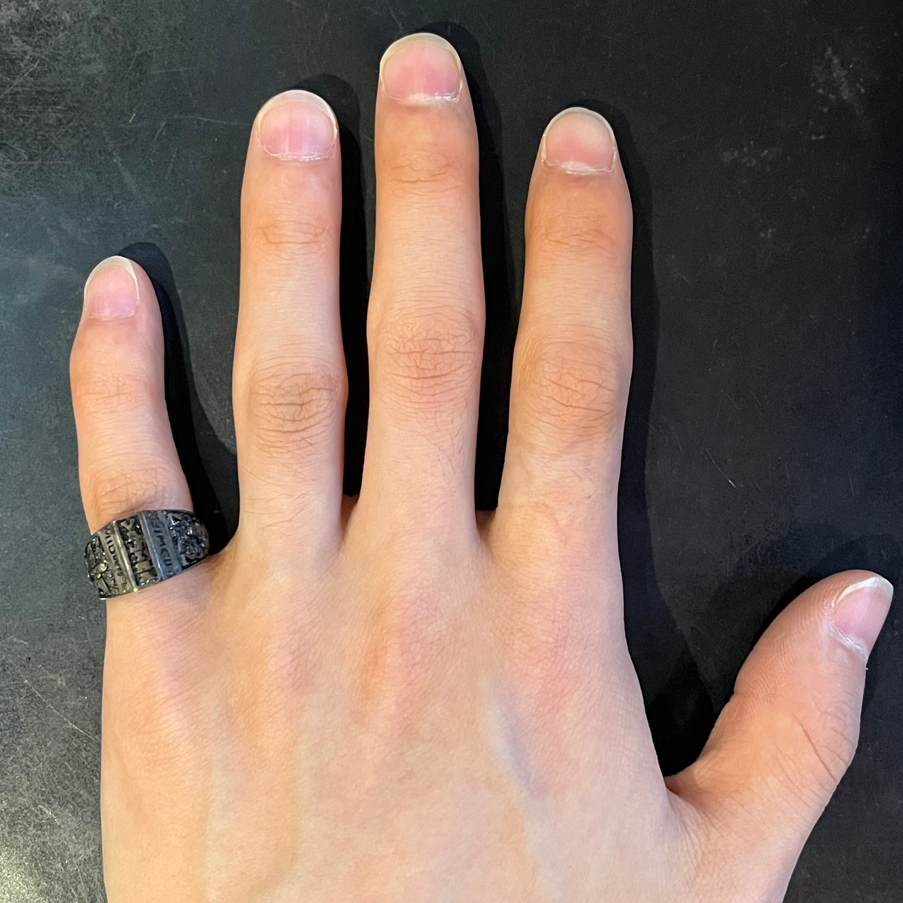 海外で買い付けた"ミッドワイフ"エングレービングデザインのシルバーリングです。