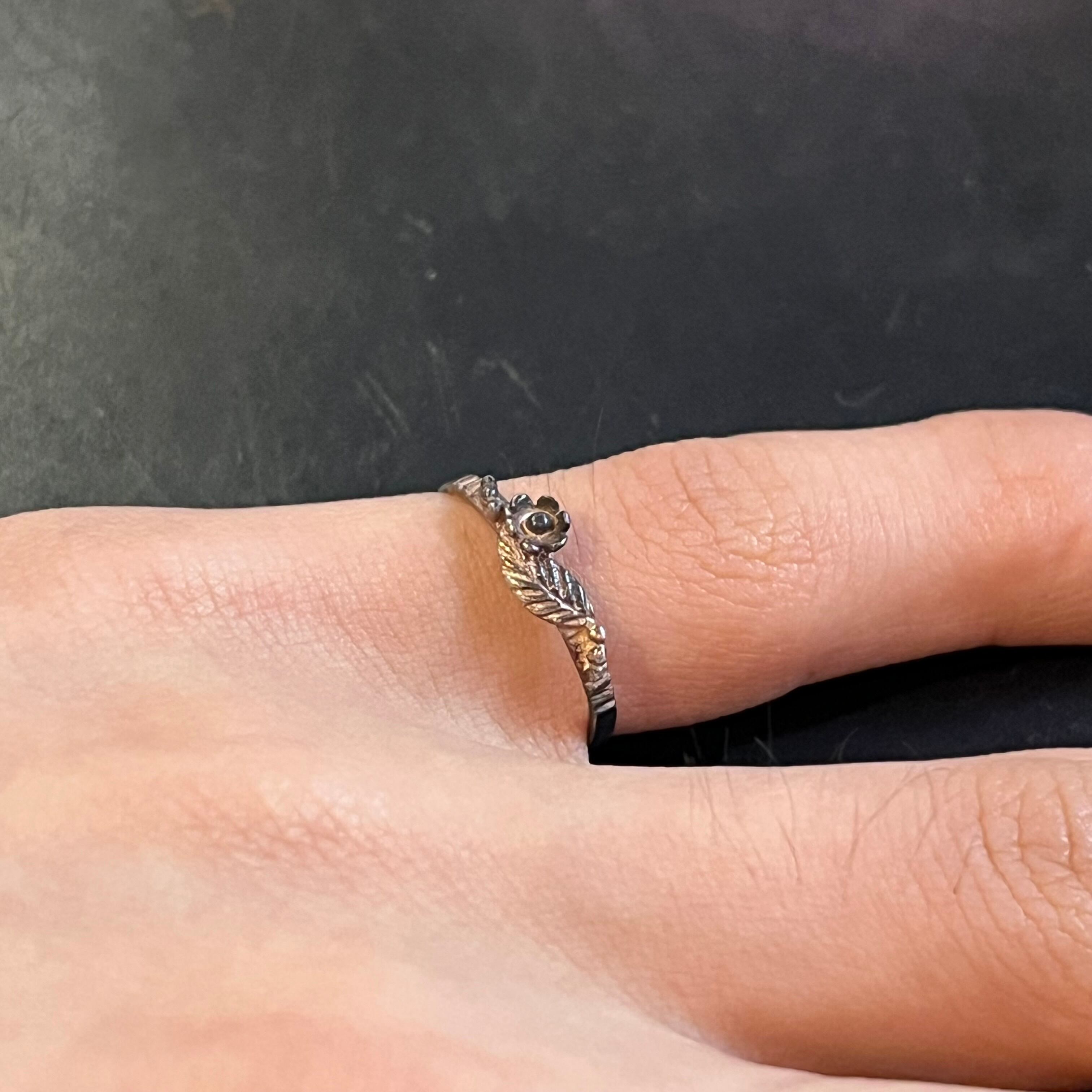海外で買い付けたフラワーアンドリーフモチーフデザインのシルバーリングです。