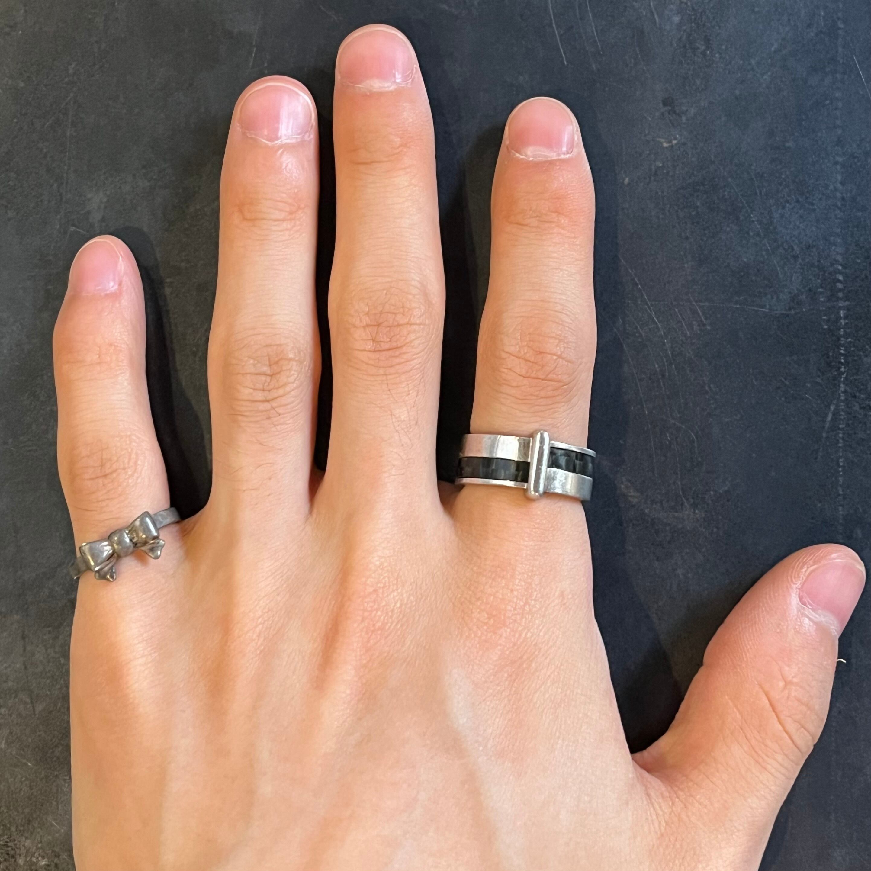 海外で買い付けたリボンモチーフデザインのシルバーリングです。