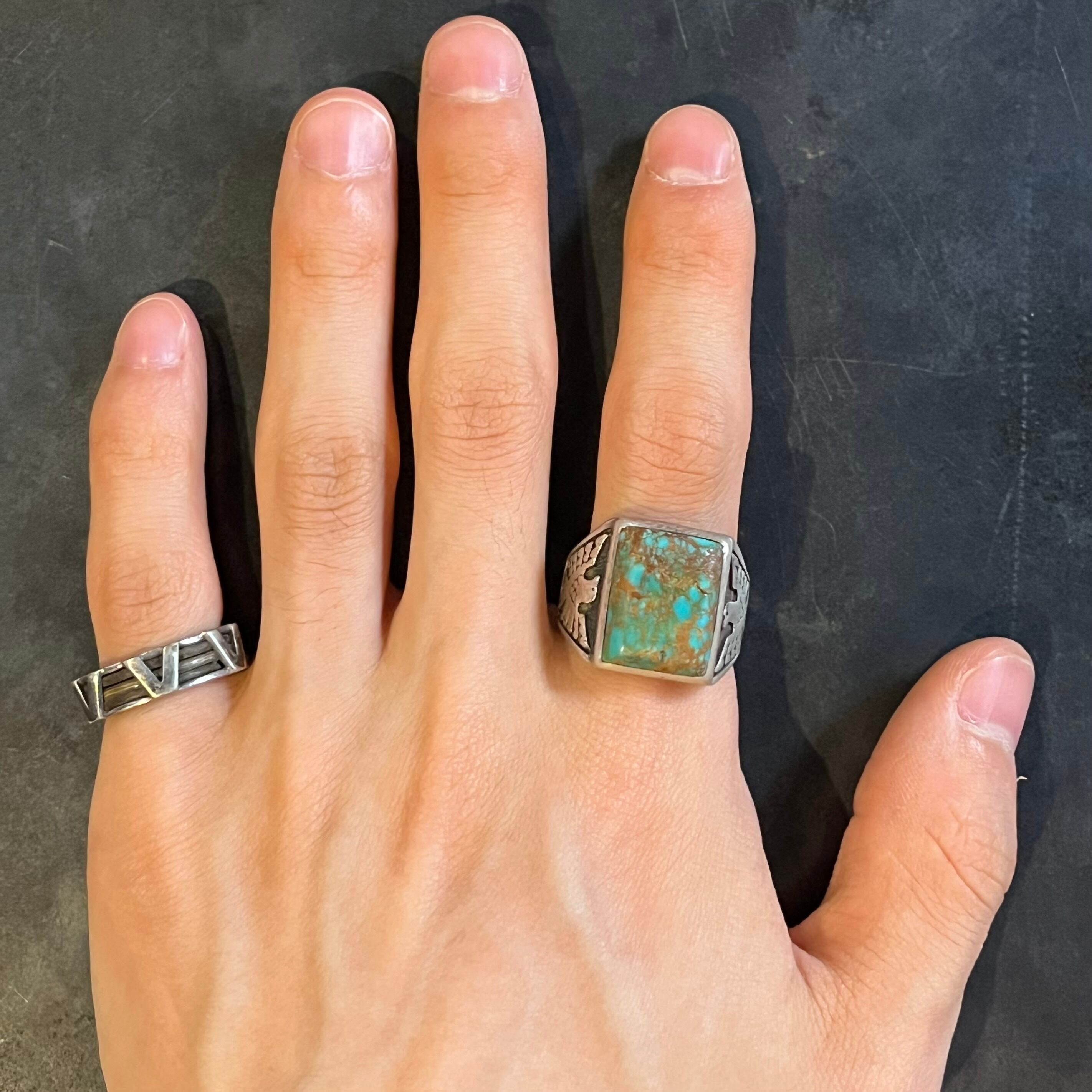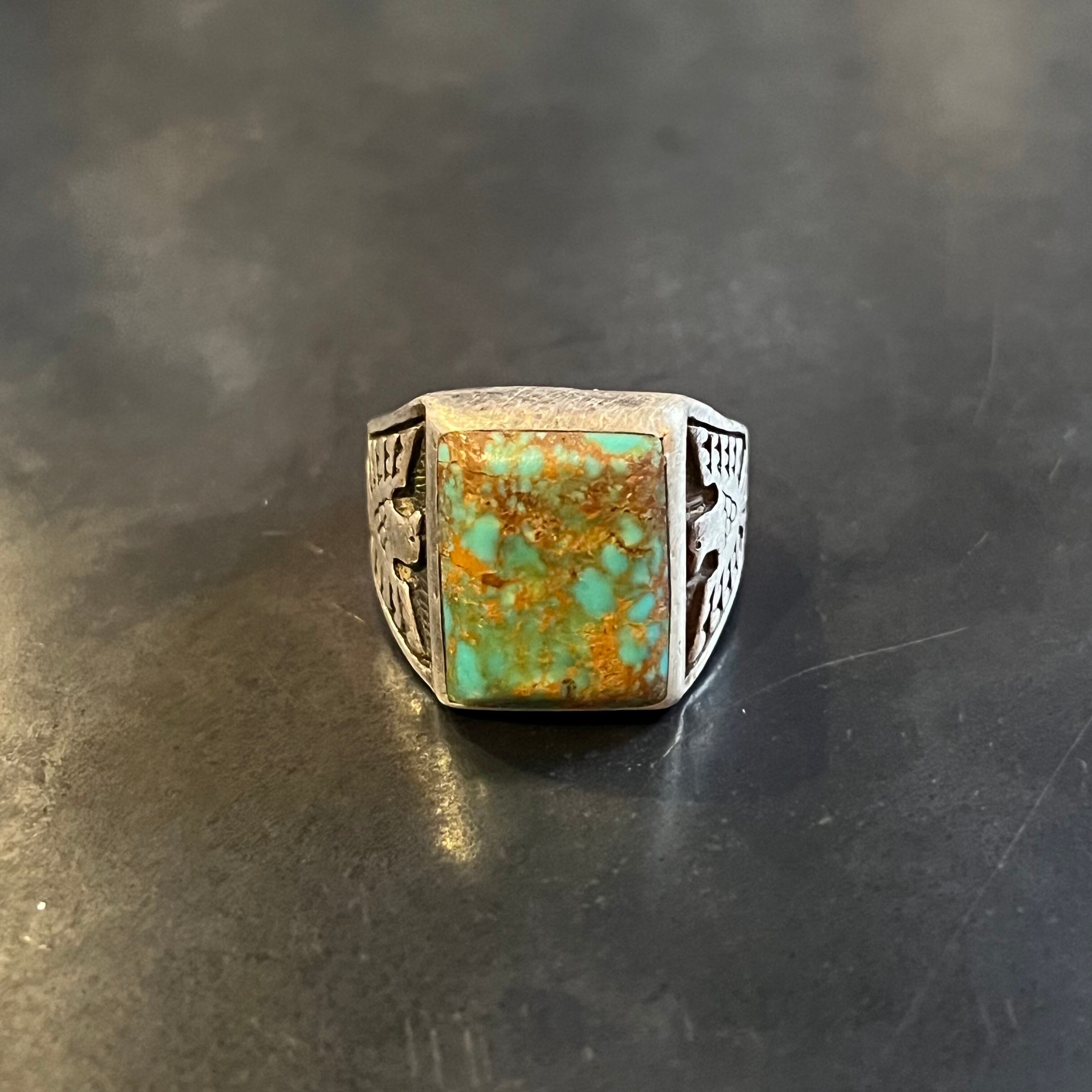 海外で買い付けたインディアンジュエリー・ナバホ族ターコイズストーンデザインのシルバーリングです。