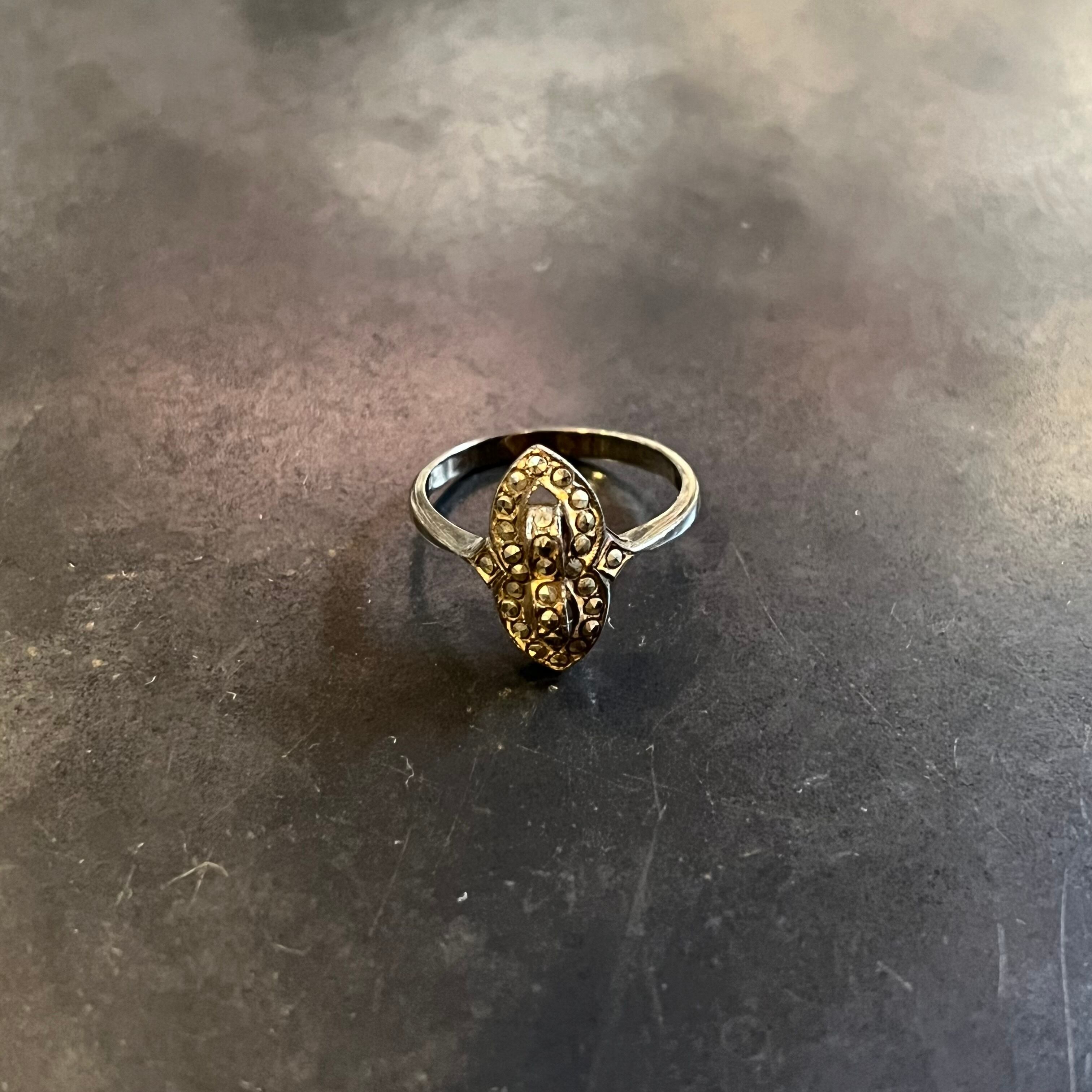 海外で買い付けたグリッターストーントライバルデザインのシルバーリングです。