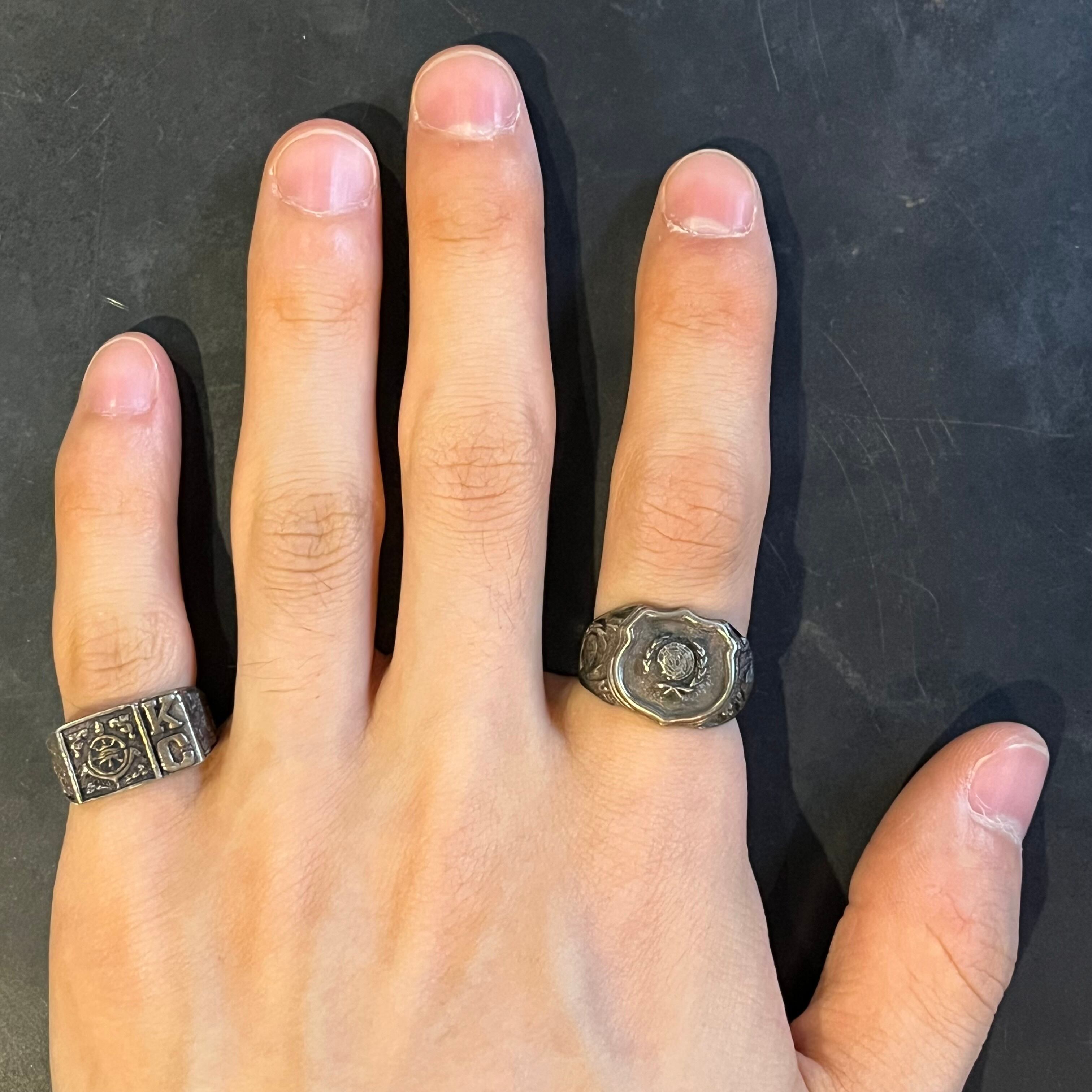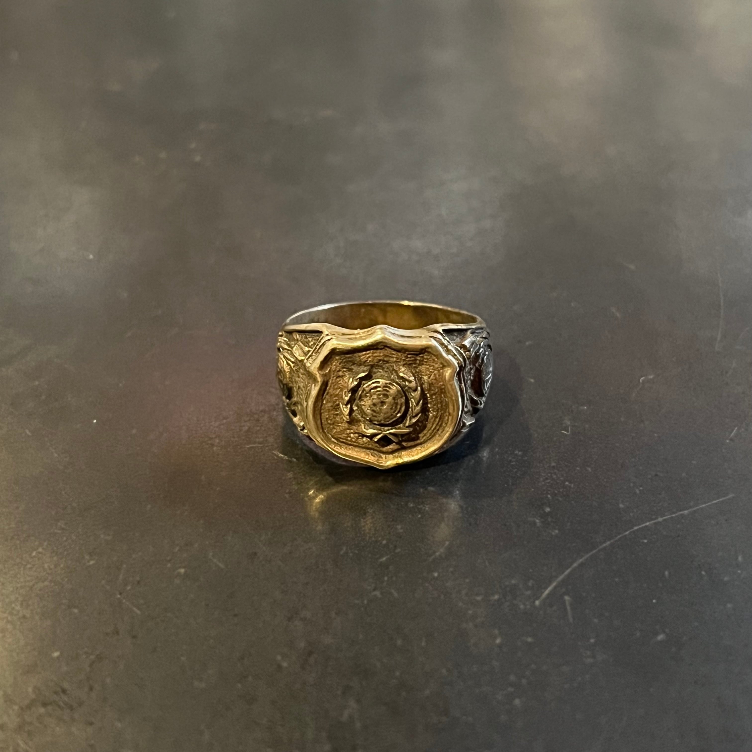 海外で買い付けたエンブレムエングレービングデザインのシルバーリングです。