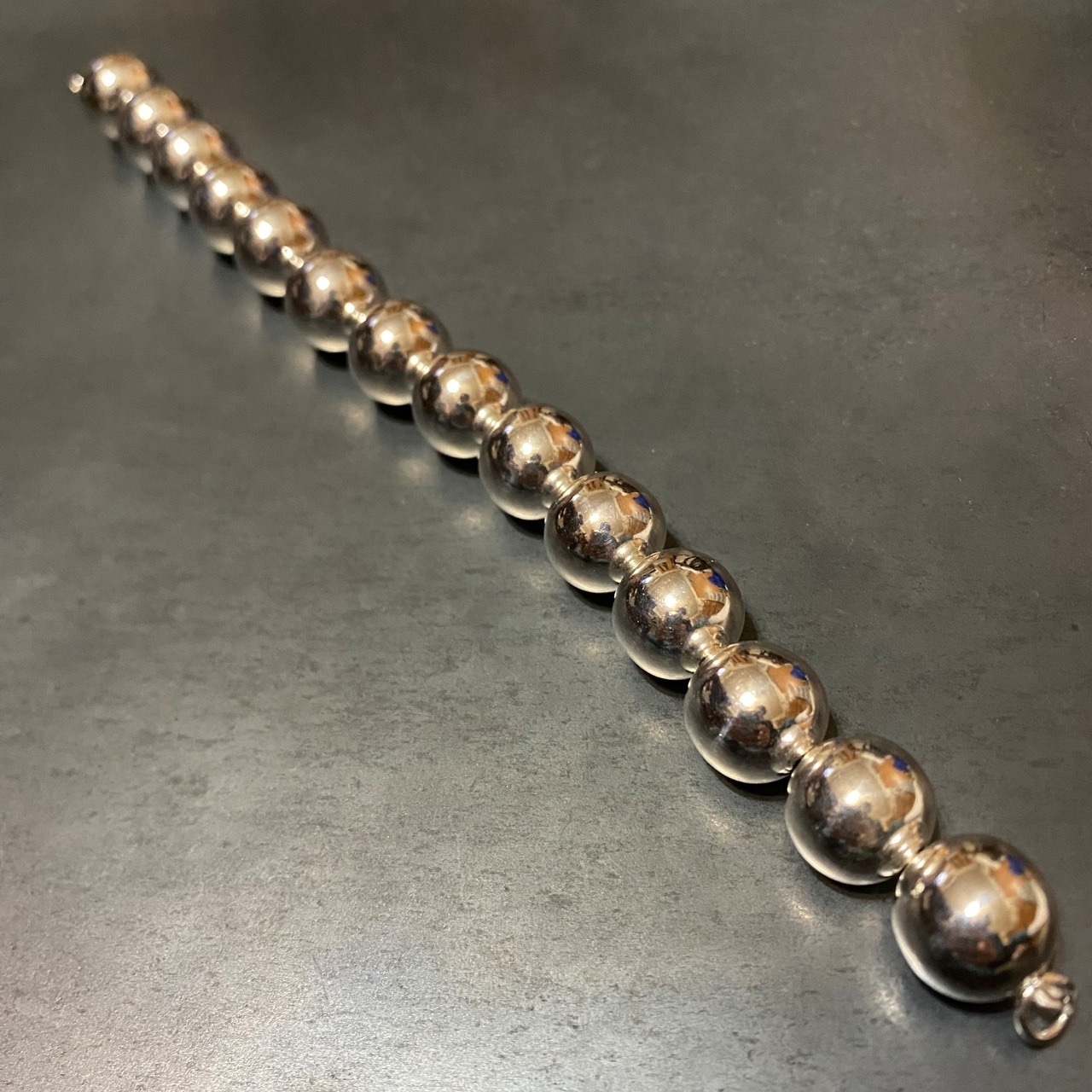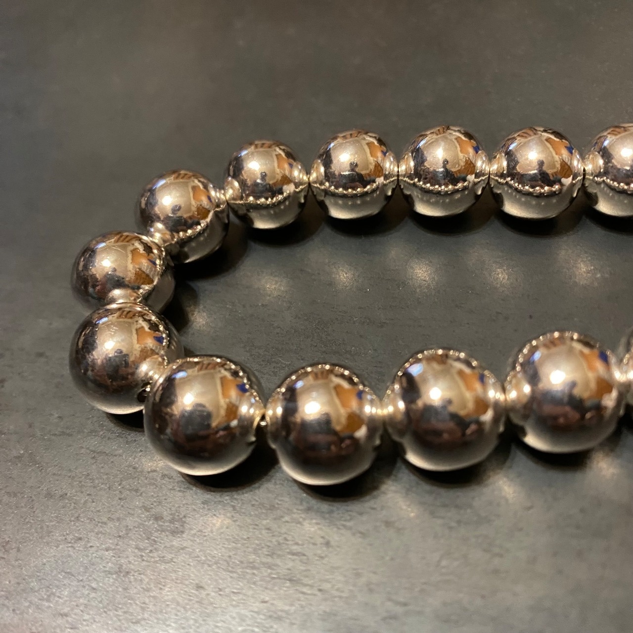 かなり大振りでインパクトのあるシルバーパールブレスレットです。