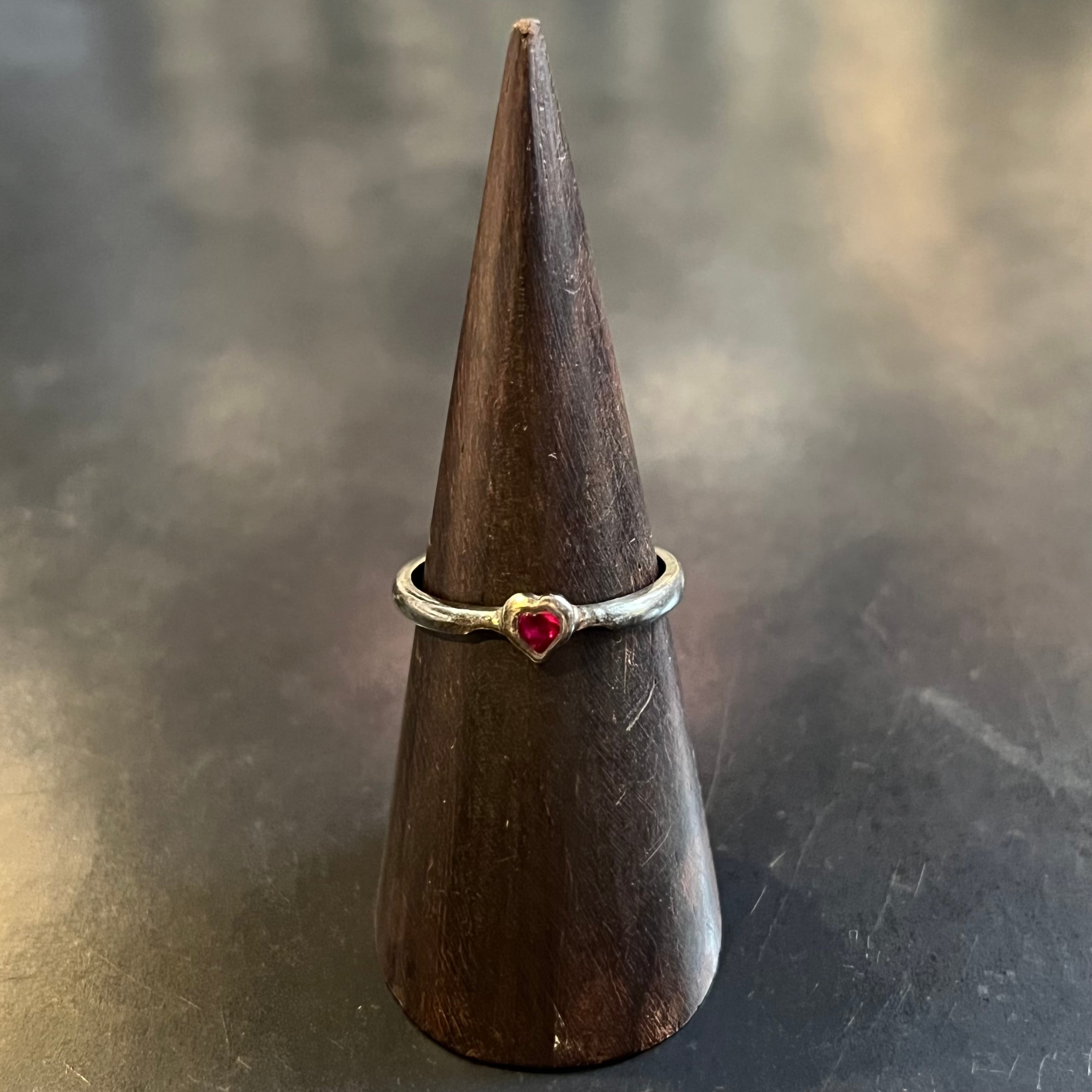 海外で買い付けたハートモチーフ・レッドストーンデザインのシルバーリングです。