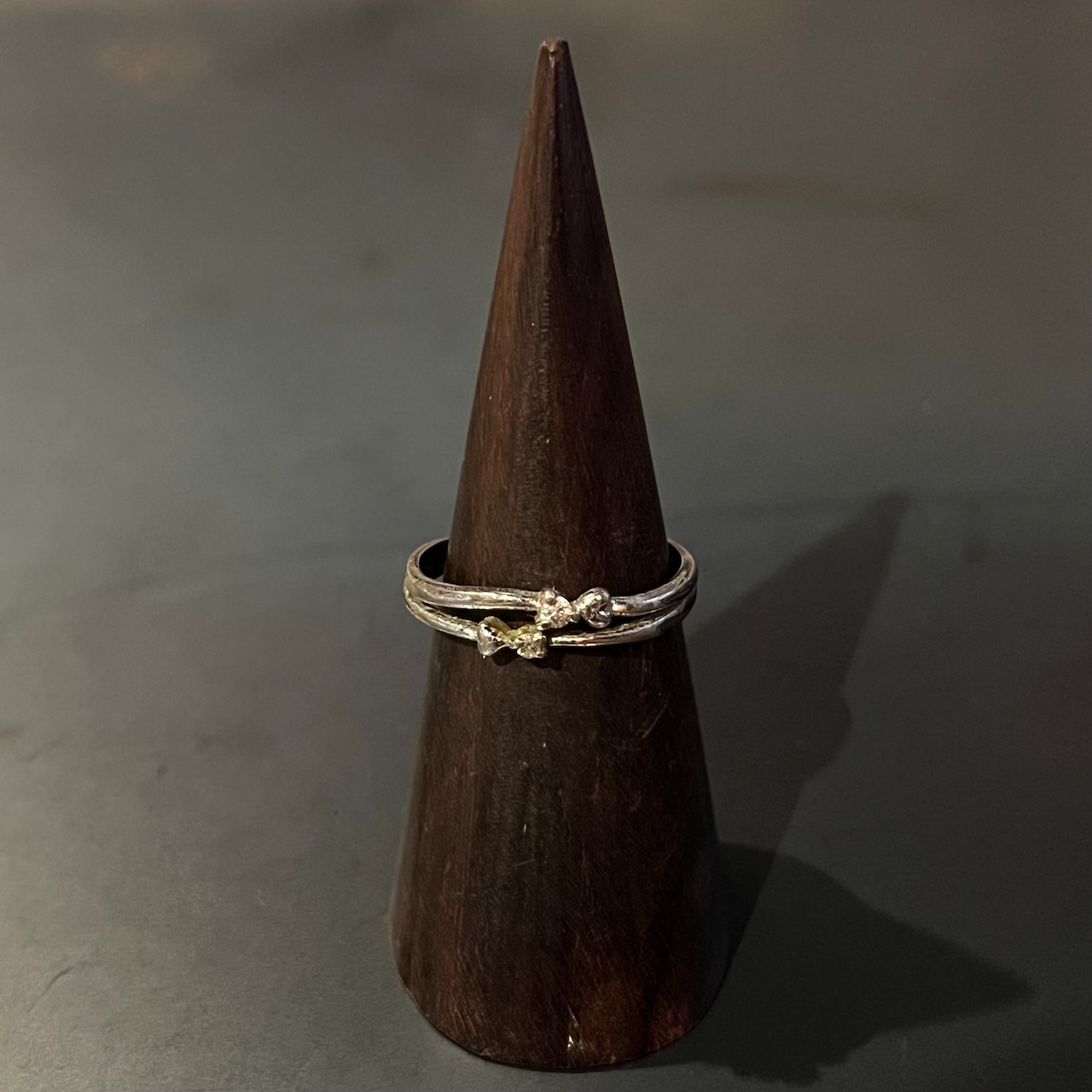 海外で買い付けたリボンモチーフ2ラインデザインのシルバーリングです。