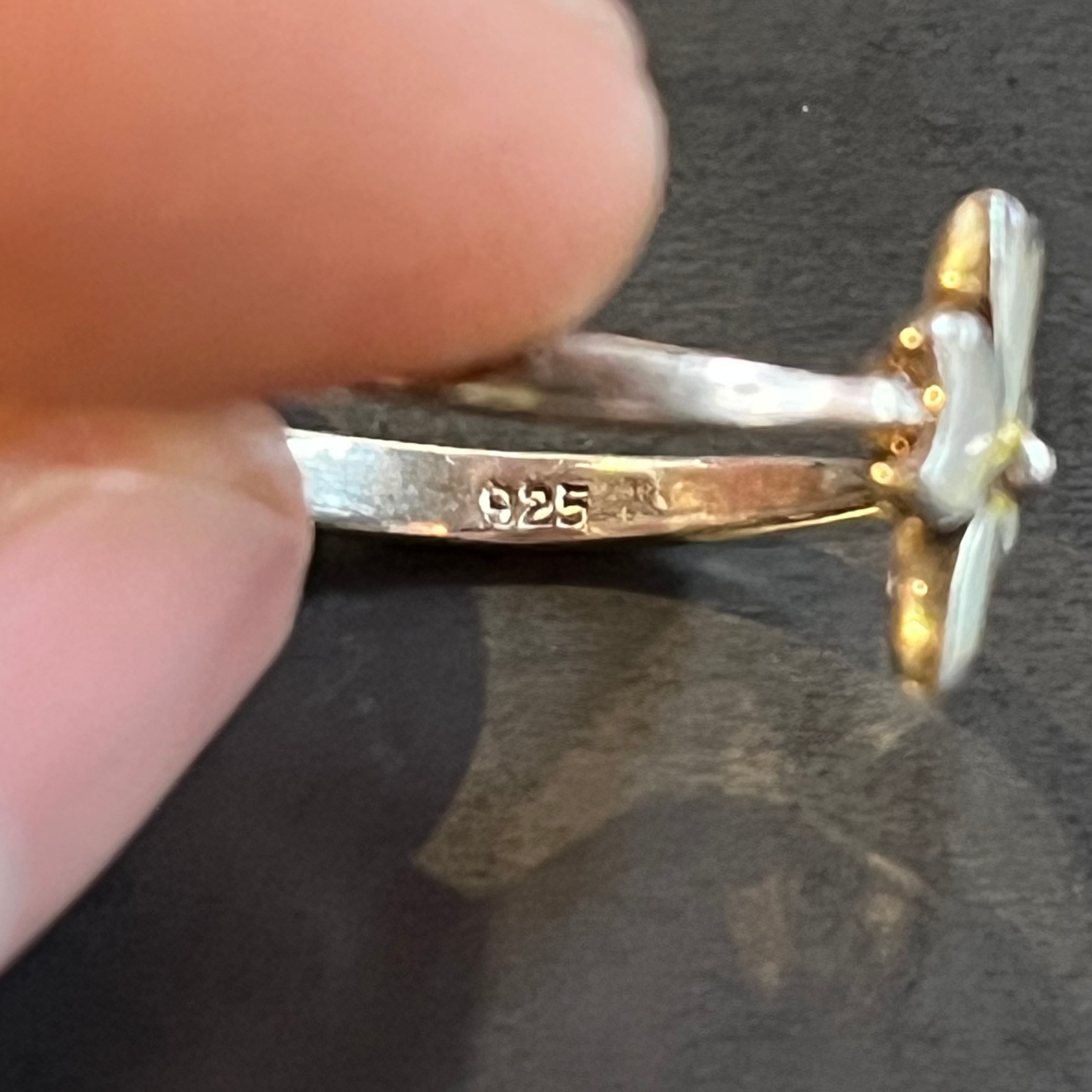 海外で買い付けたクローバーモチーフフラワーデザインのシルバーリングです。