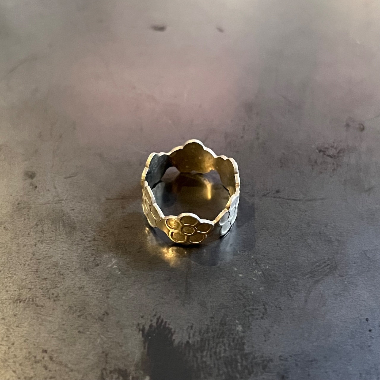 海外で買い付けたフラワーモチーフコネクテッドデザインのシルバーリングです。