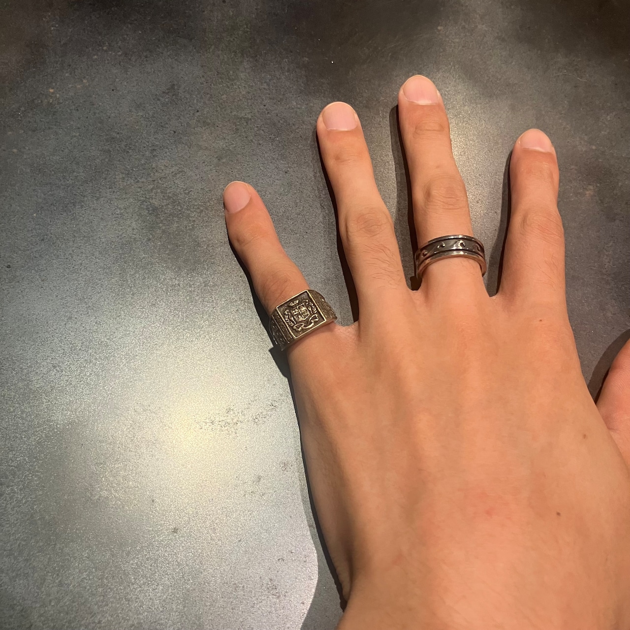 海外で買い付けたレリーフデザインのシルバーリングです。