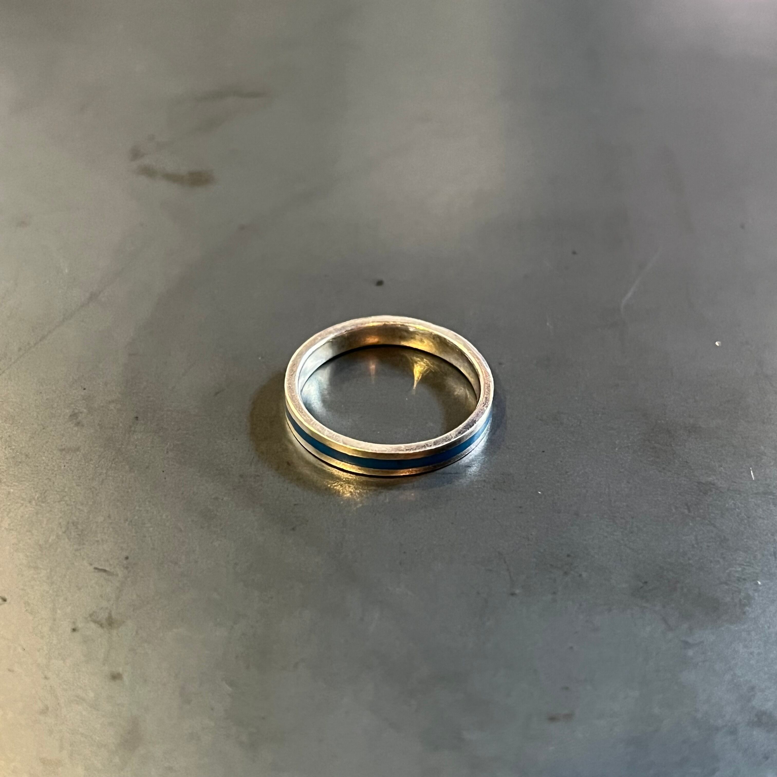 海外で買い付けたプレーンブルーラインデザインのシルバーリングです。