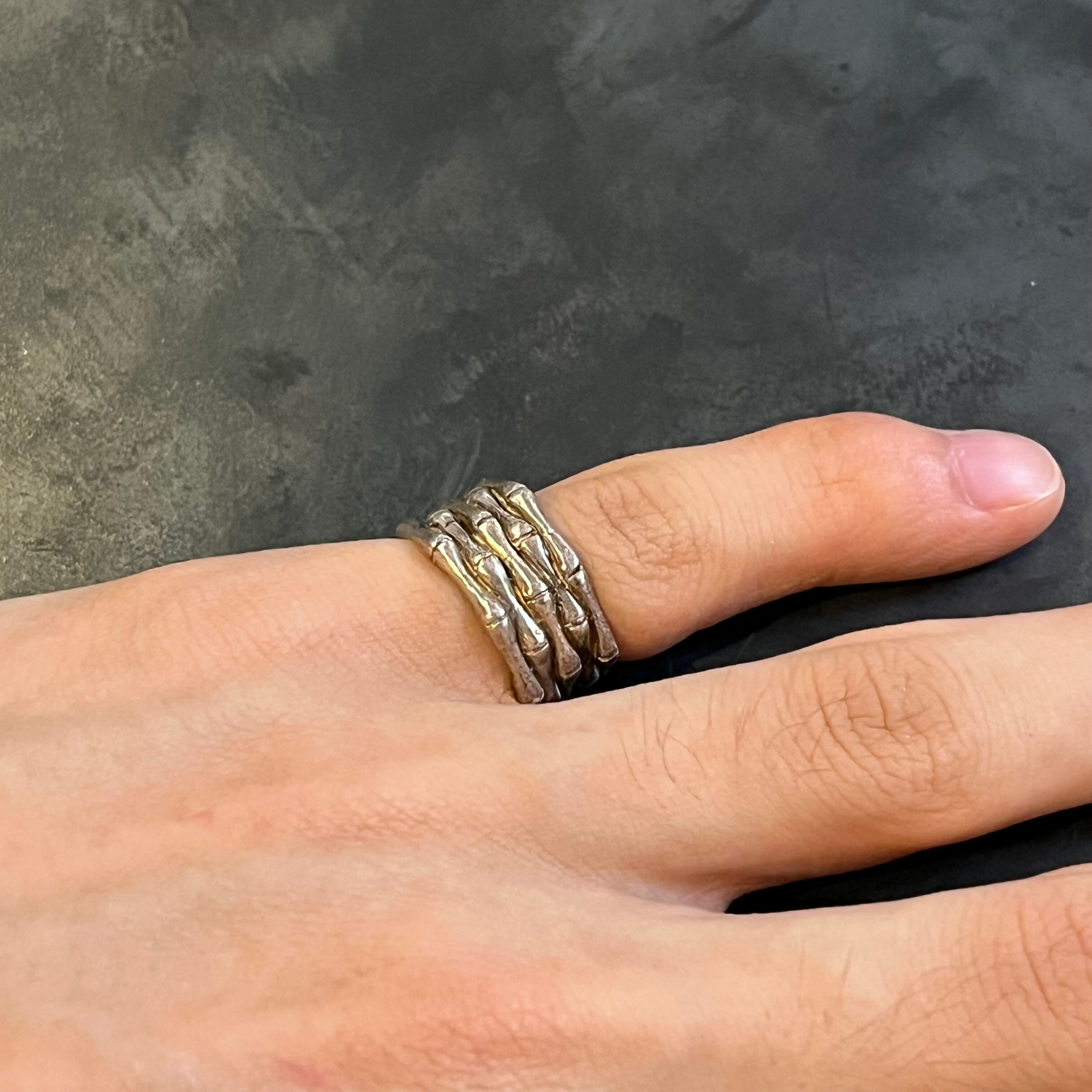 海外で買い付けたボーンモチーフトリプルデザインのシルバーリングです。
