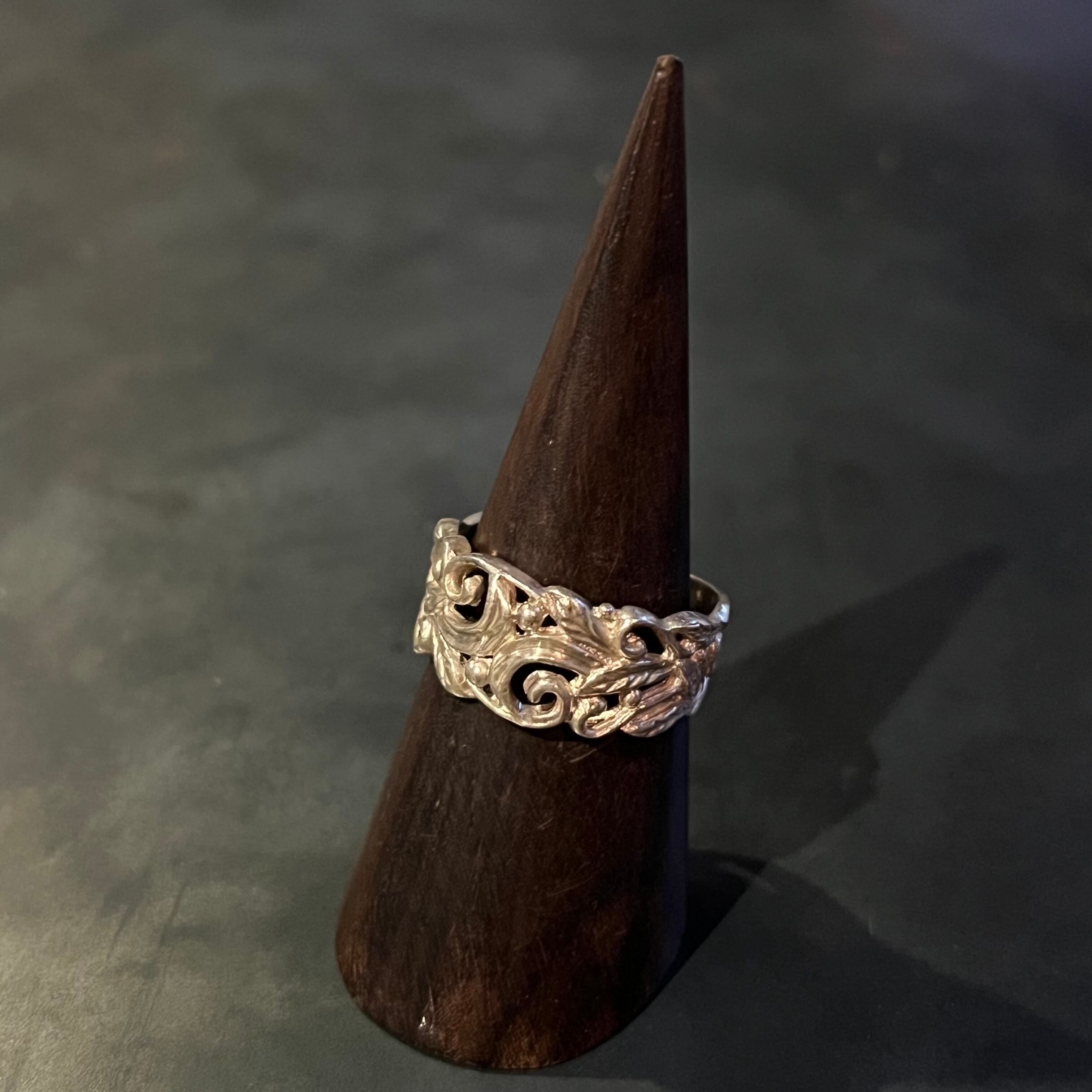海外で買い付けたリーフモチーフスワールデザインのシルバーリングです。