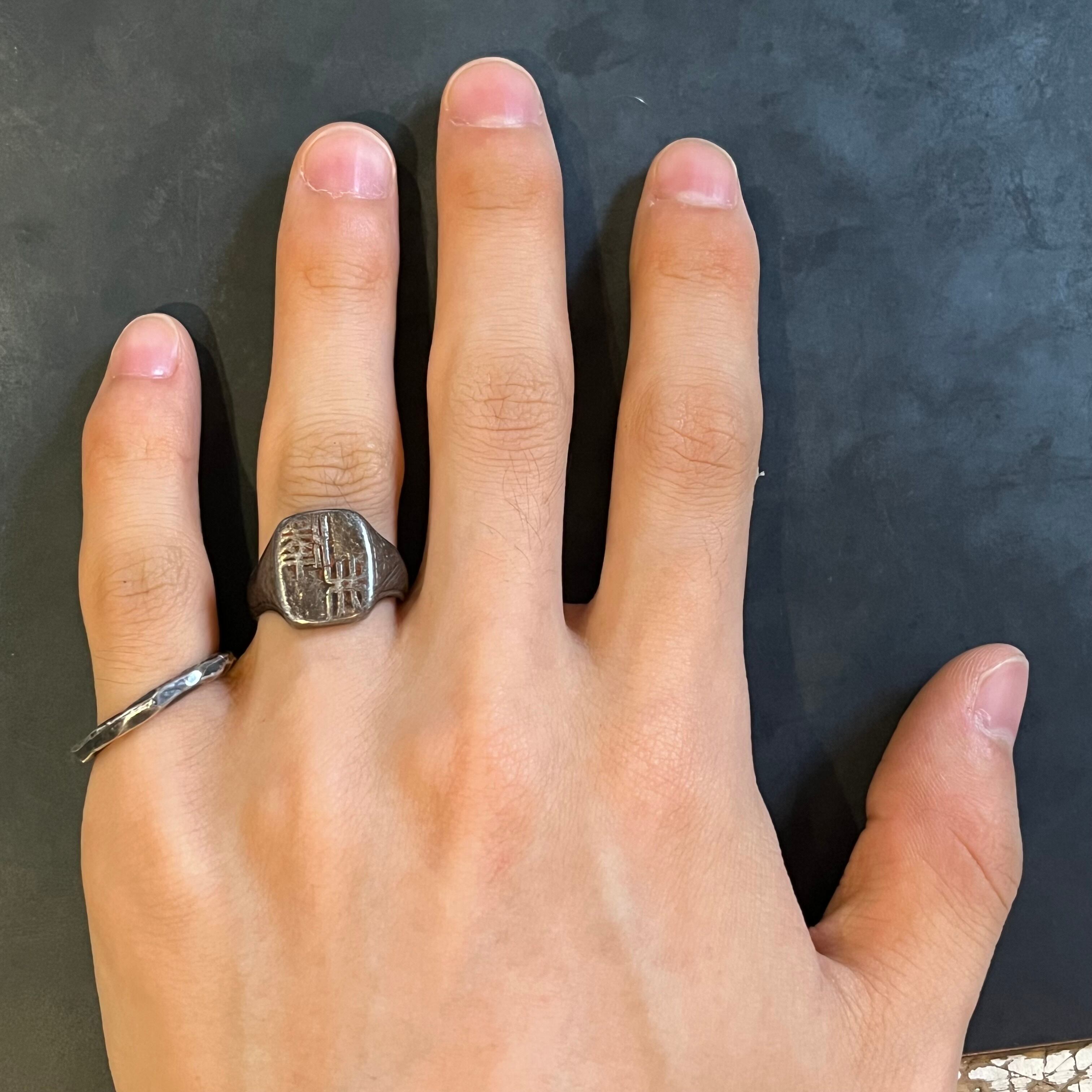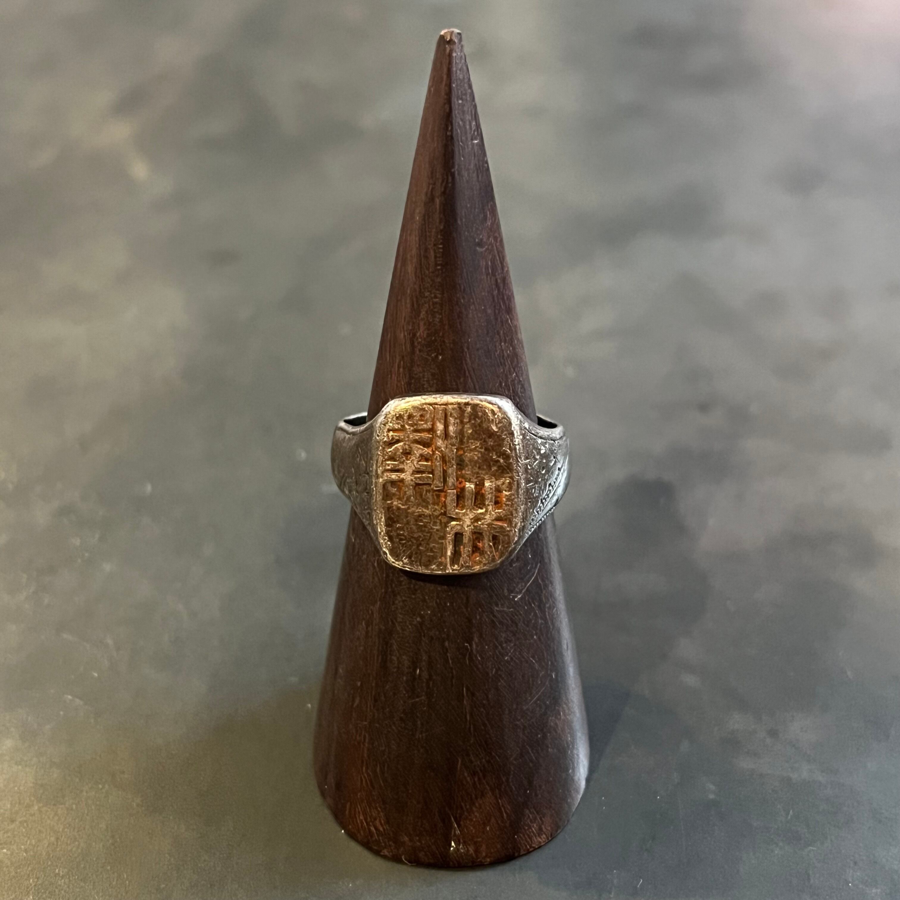 海外で買い付けたオールドキャラクター・旧字体デザインのシルバーリングです。