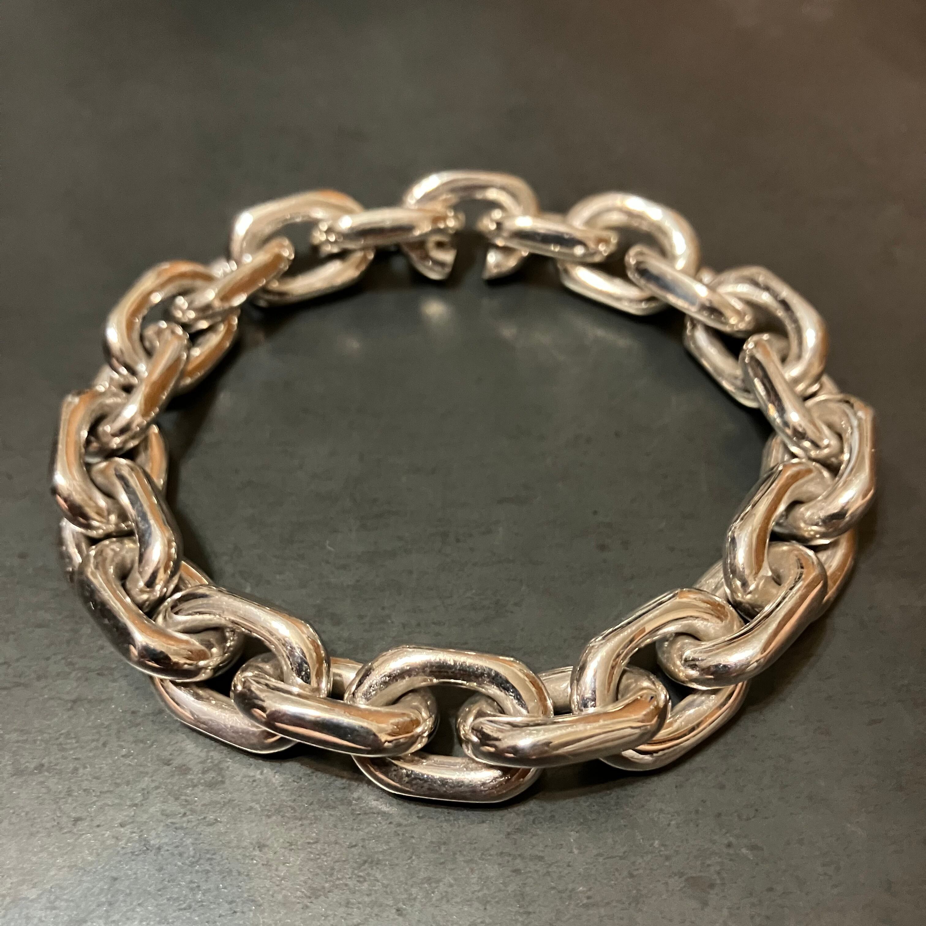 海外で買い付けたオーバルチェーンデザインのシルバーブレスレットです。