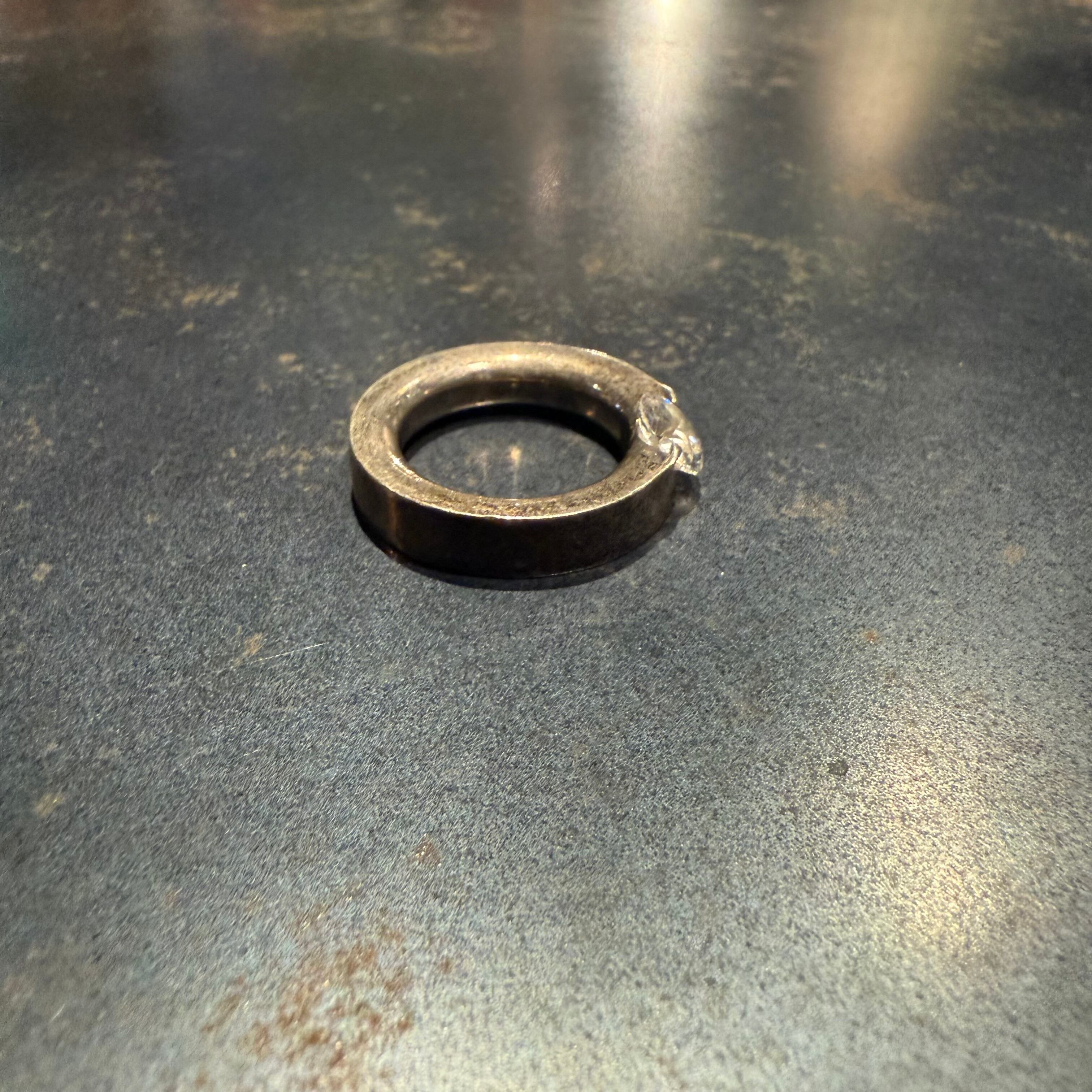 海外で買い付けたホワイトストーンデザインのシルバーリングです。