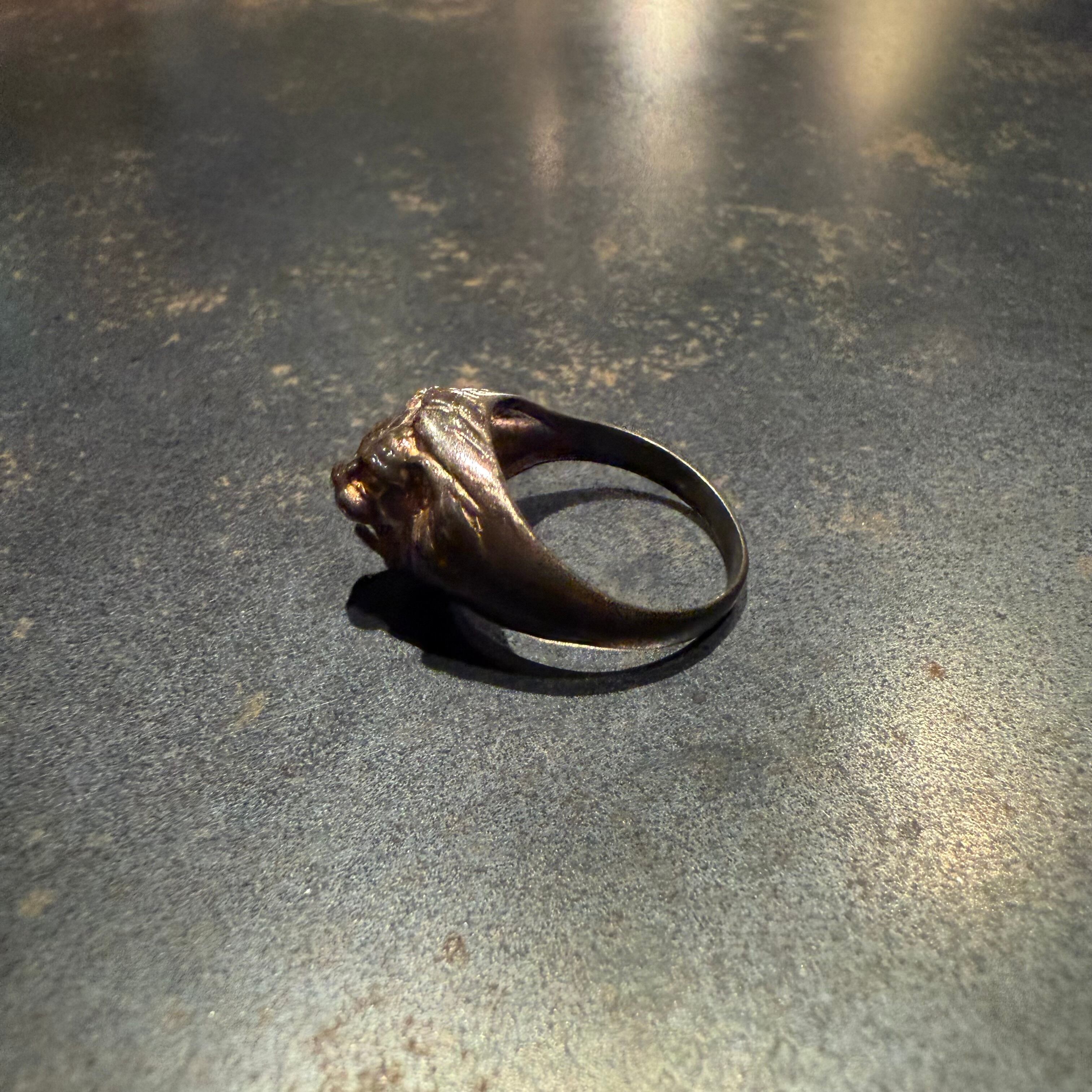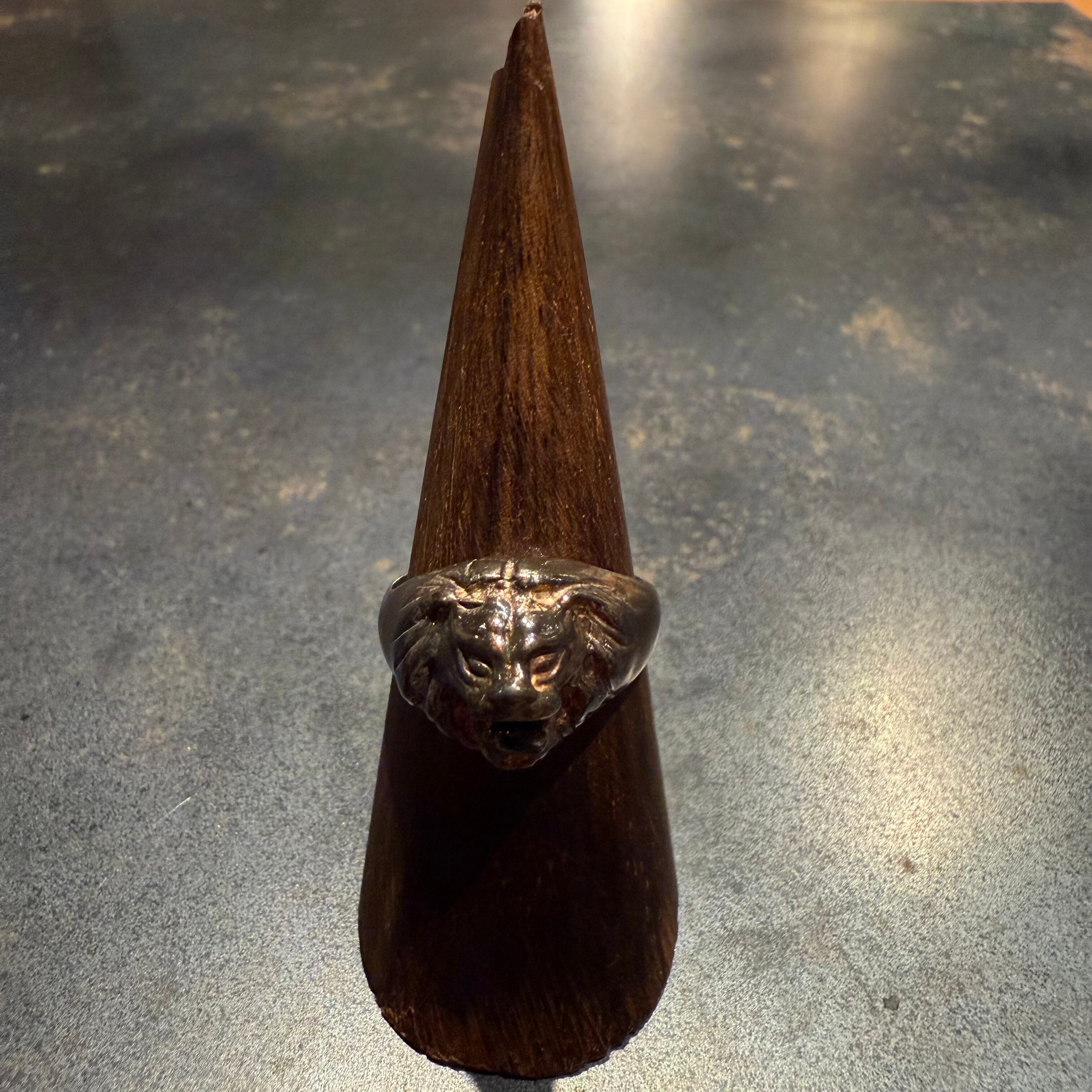 海外で買い付けたライオンモチーフアニマルデザインのシルバーリングです。