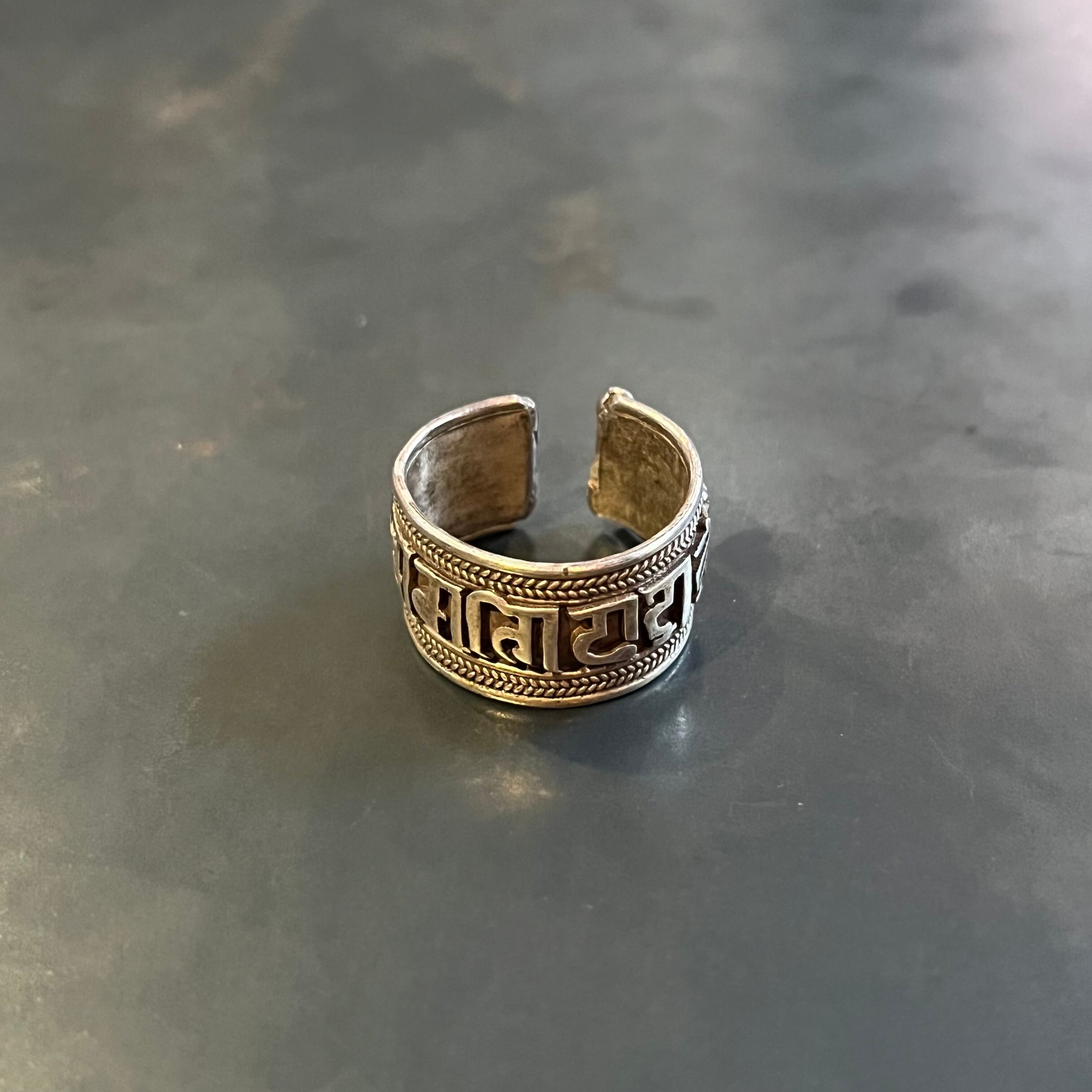 海外で買い付けたビッグワイドサンスクリット語(梵字)デザインのシルバーリングです。