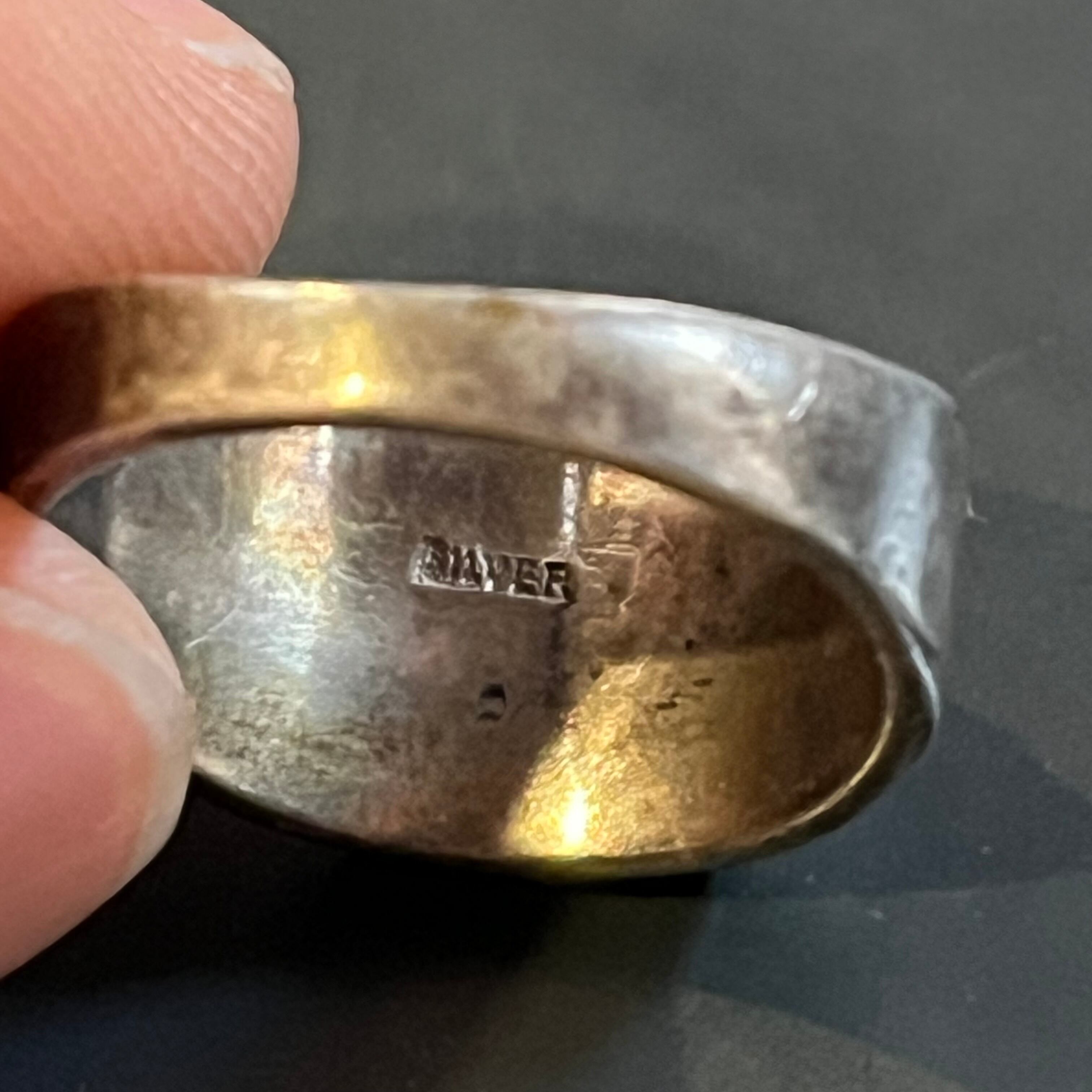 海外で買い付けたメモリアルエングレービングデザインのシルバーリングです。