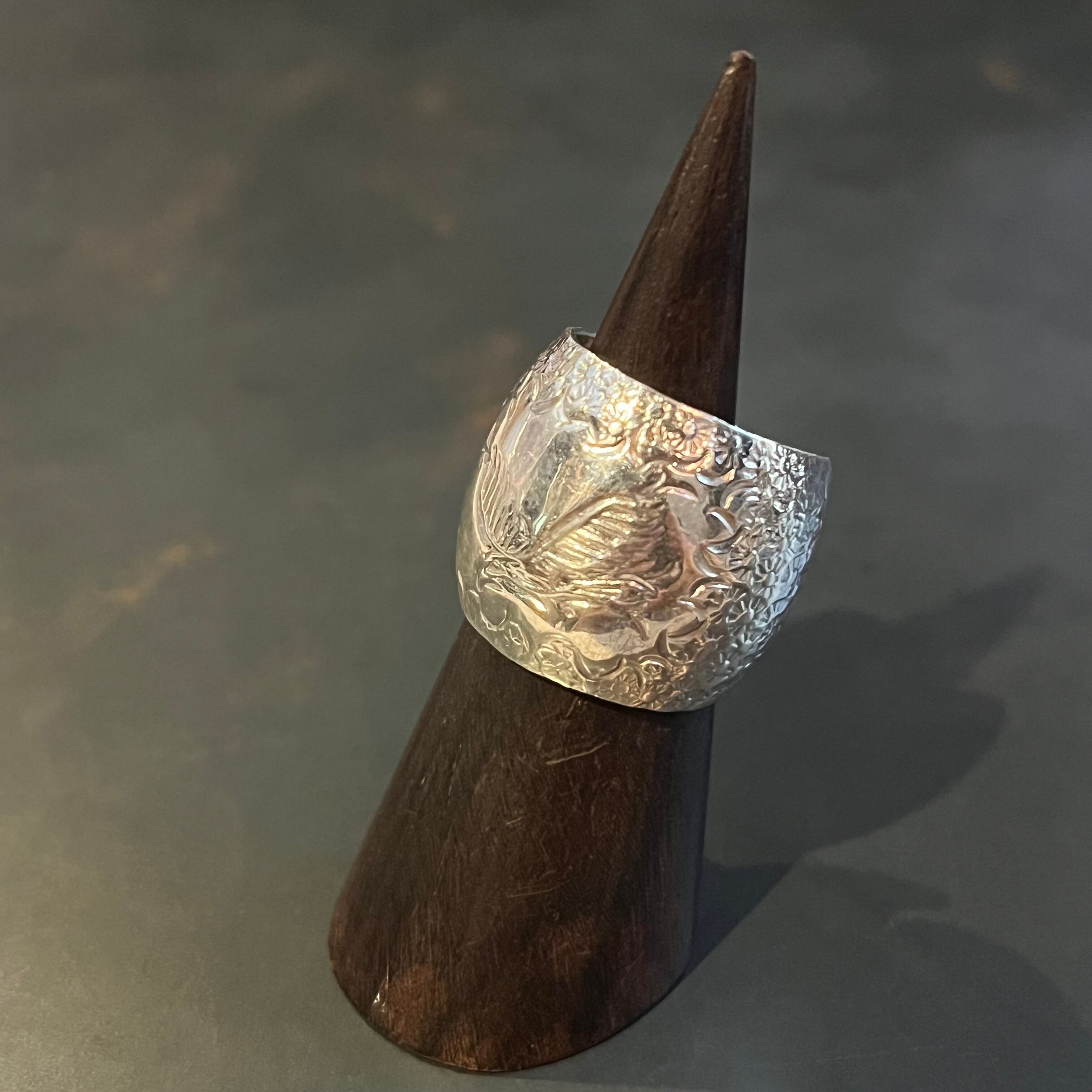 海外で買い付けたビッグ・バードモチーフトライバルワイドデザインのシルバーリングです。