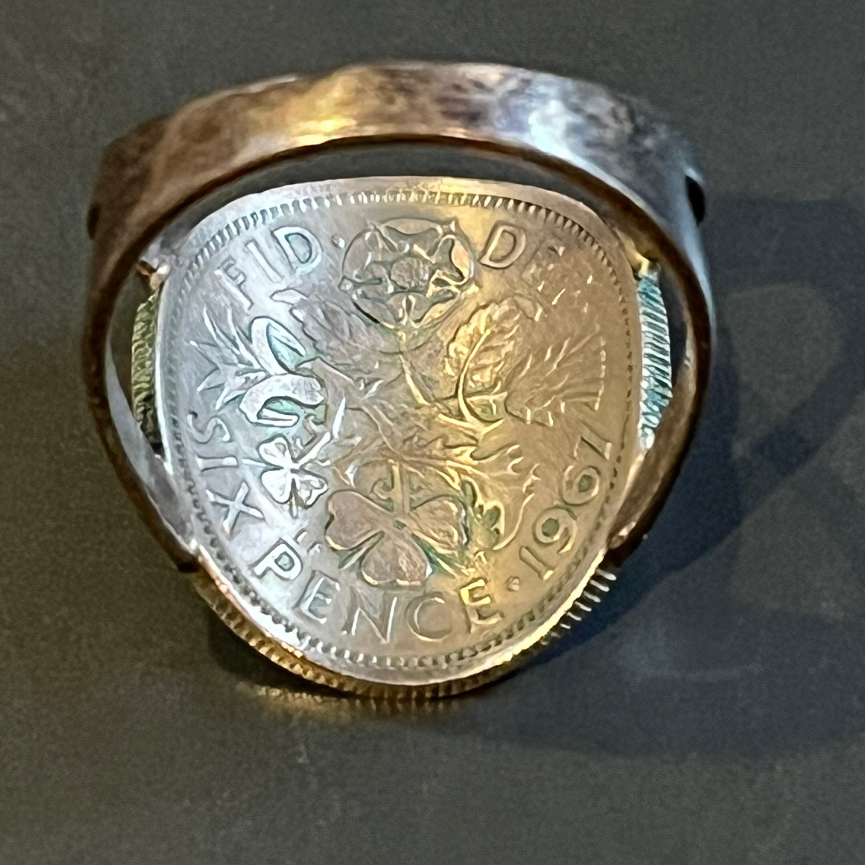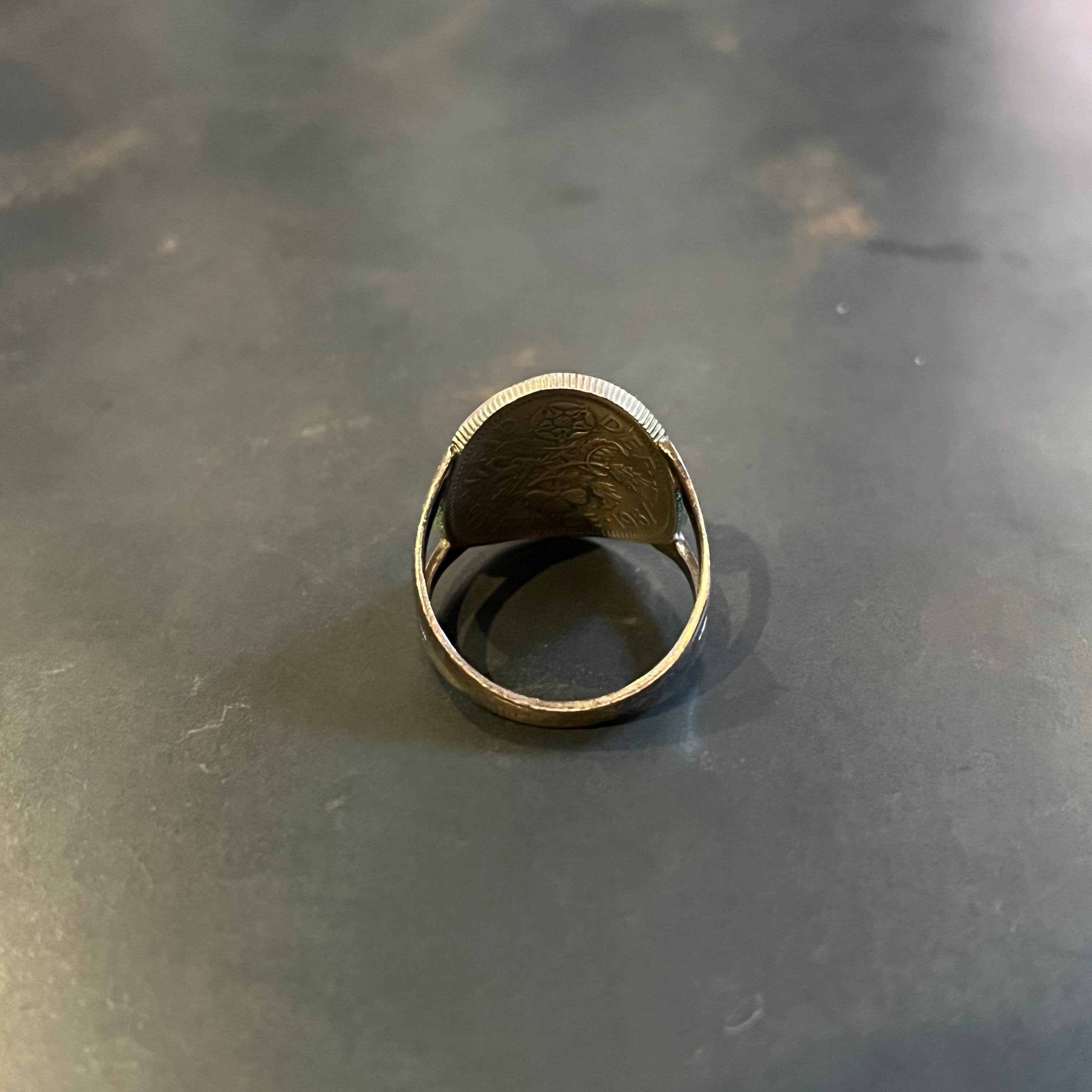 海外で買い付けたエリザベスコインモチーフデザインのシルバーリングです。