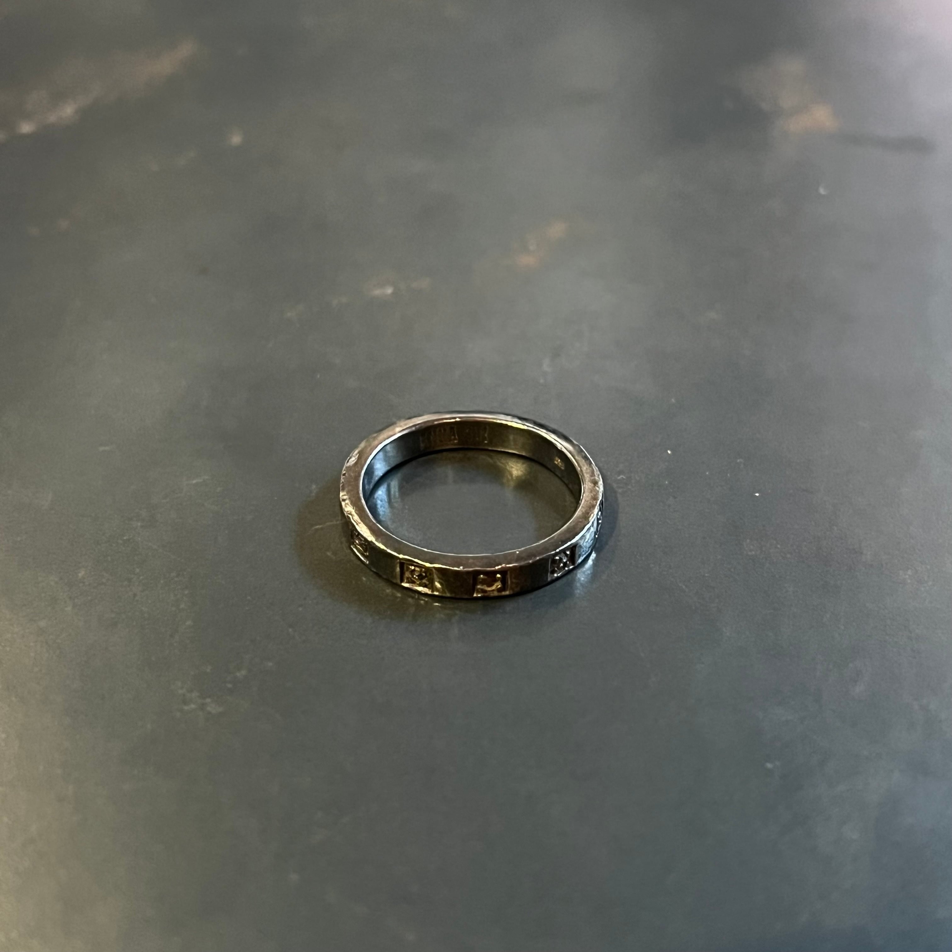 海外で買い付けたスクエアエングレービングデザインのシルバーリングです。