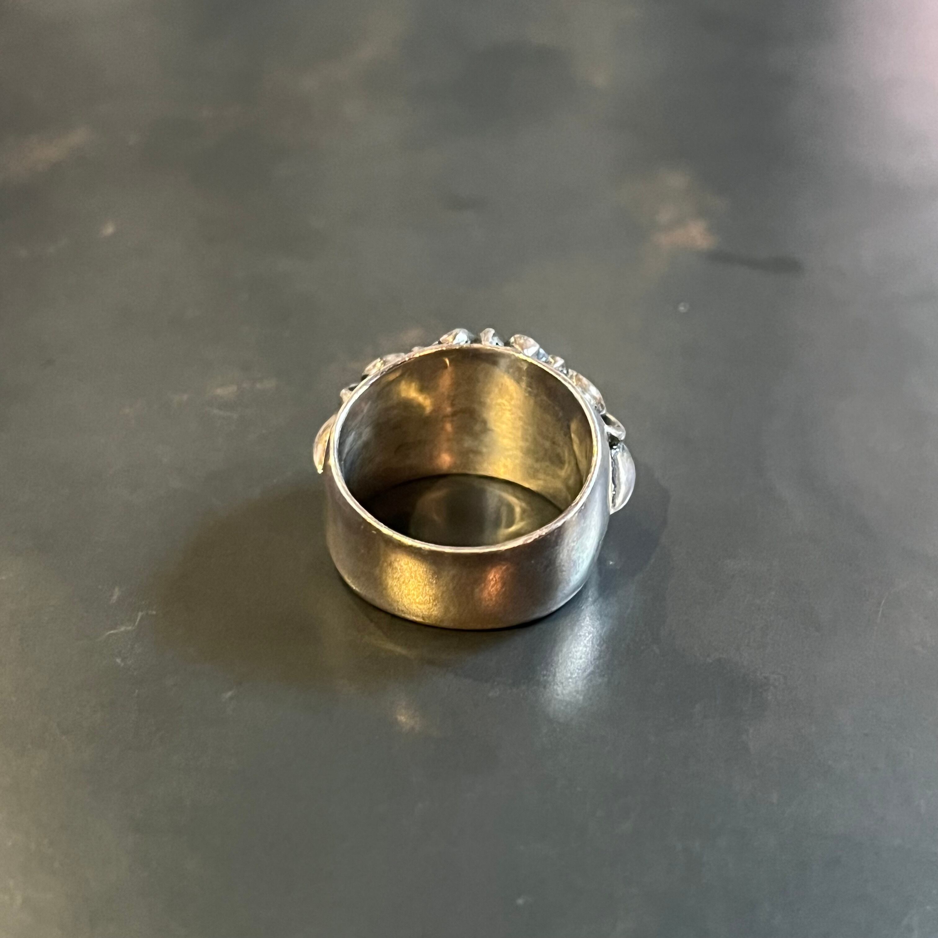 海外で買い付けたフローラルクロスモチーフデザインのシルバーリングです。