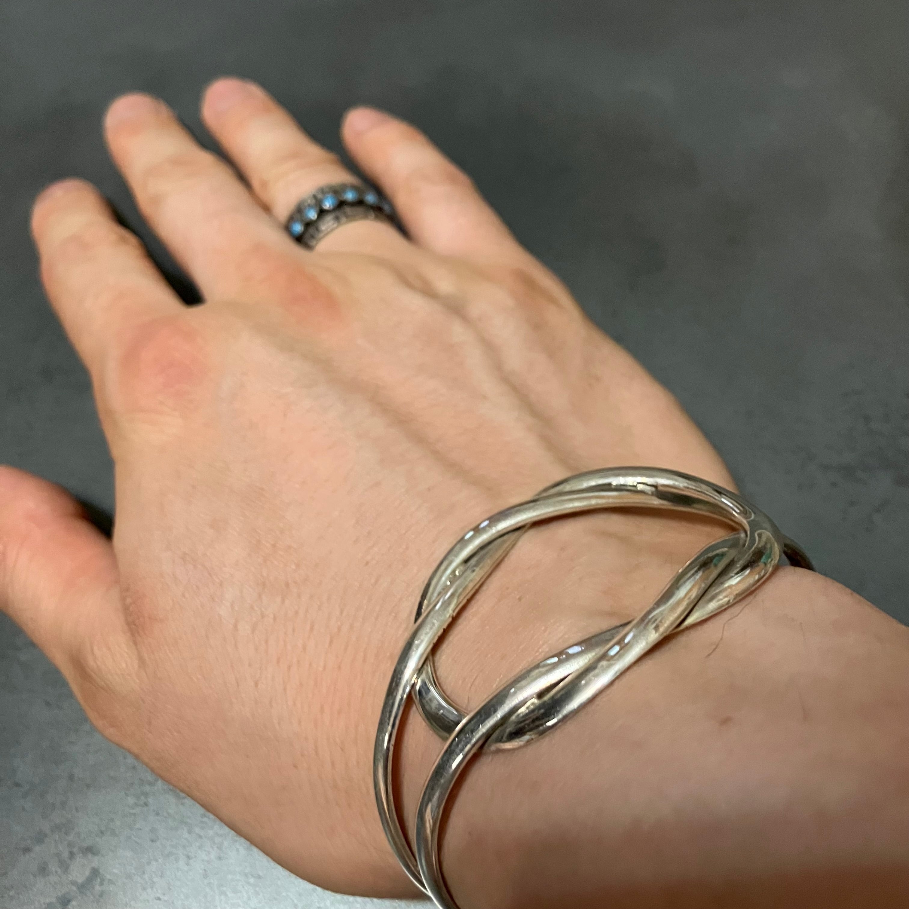 海外で買い付けたビッグサイズのノットデザインシルバーバングルです。