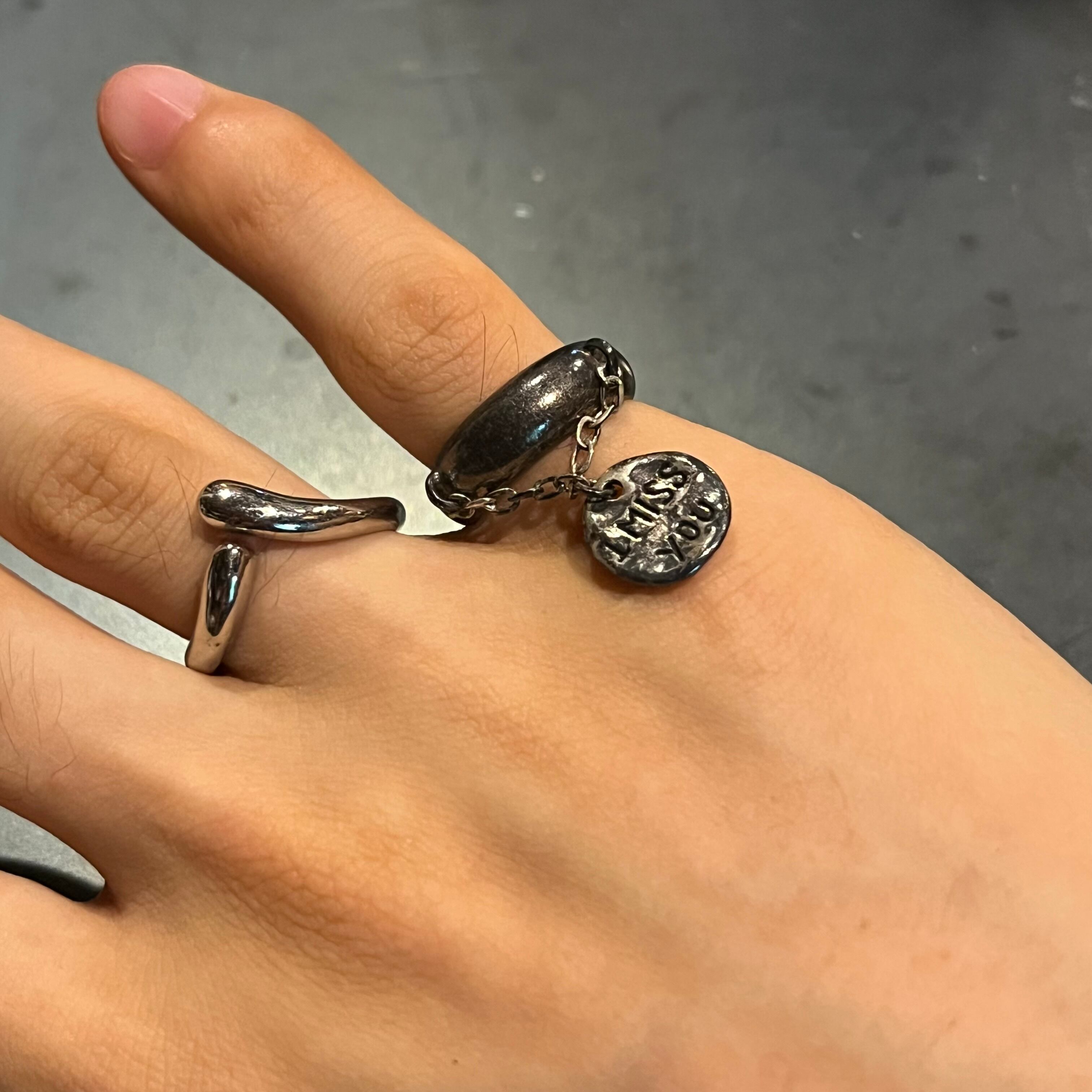 海外で買い付けたチェーンチャームデザインのシルバーリングです。