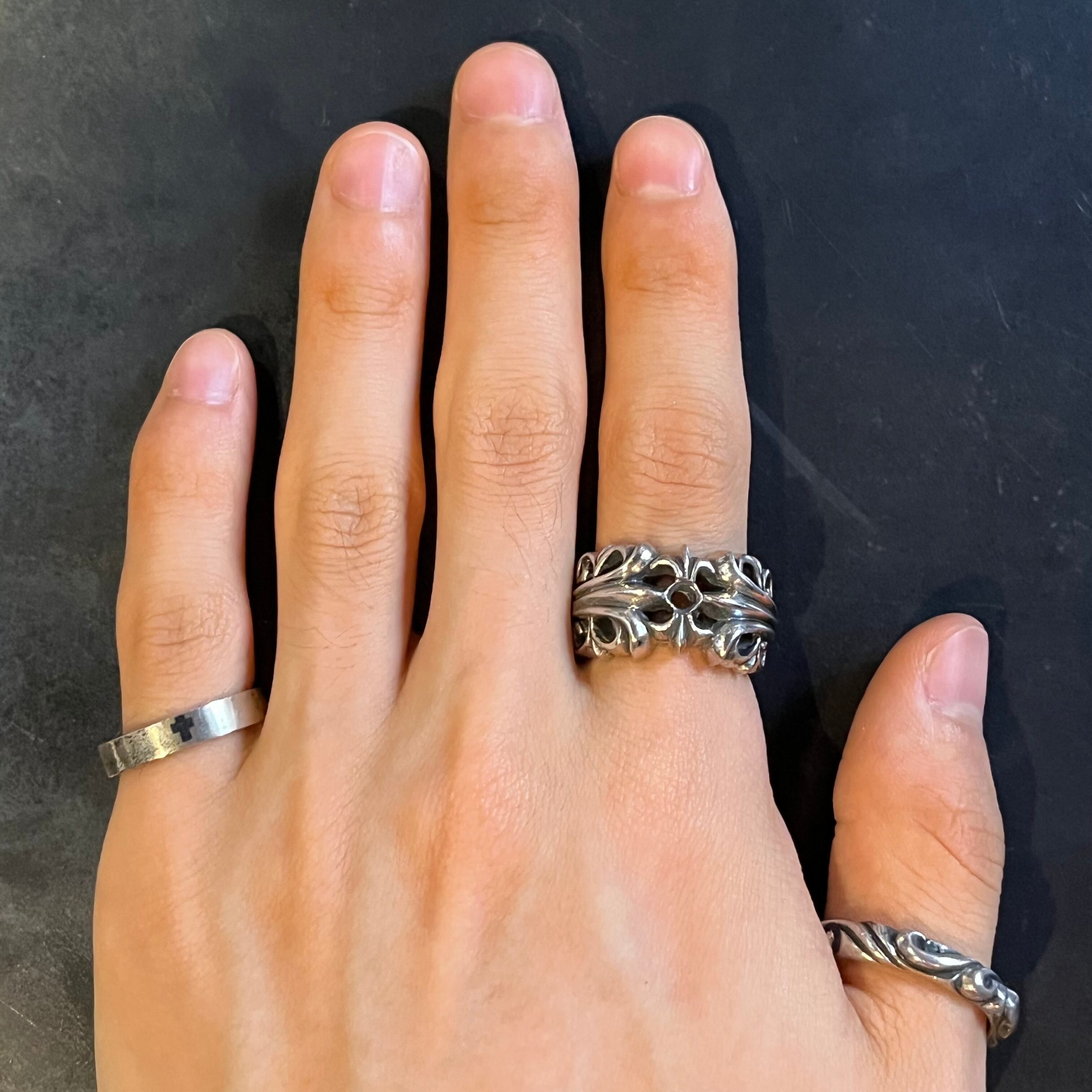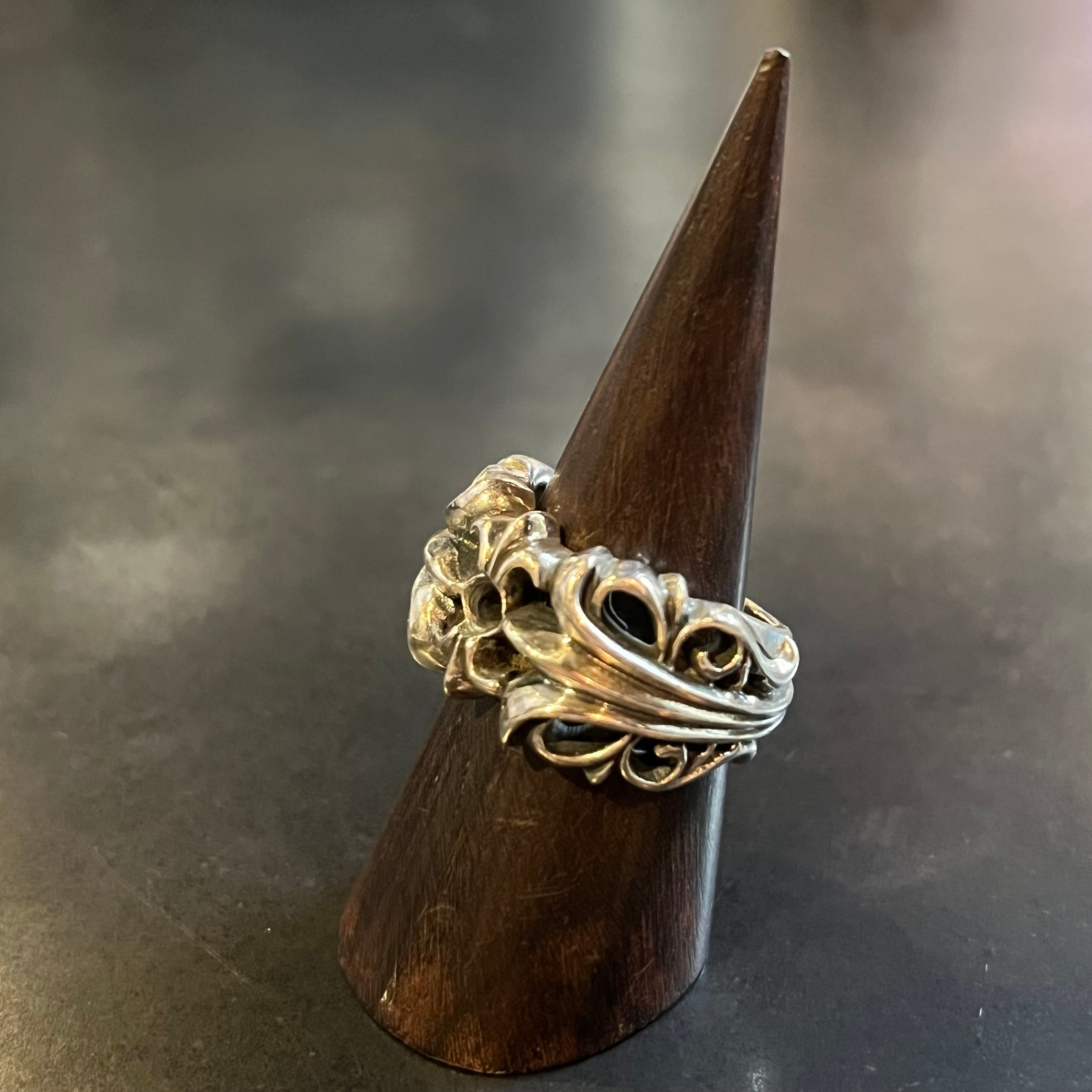 海外で買い付けたフローラルクロスゴシックライクデザインのシルバーリングです。