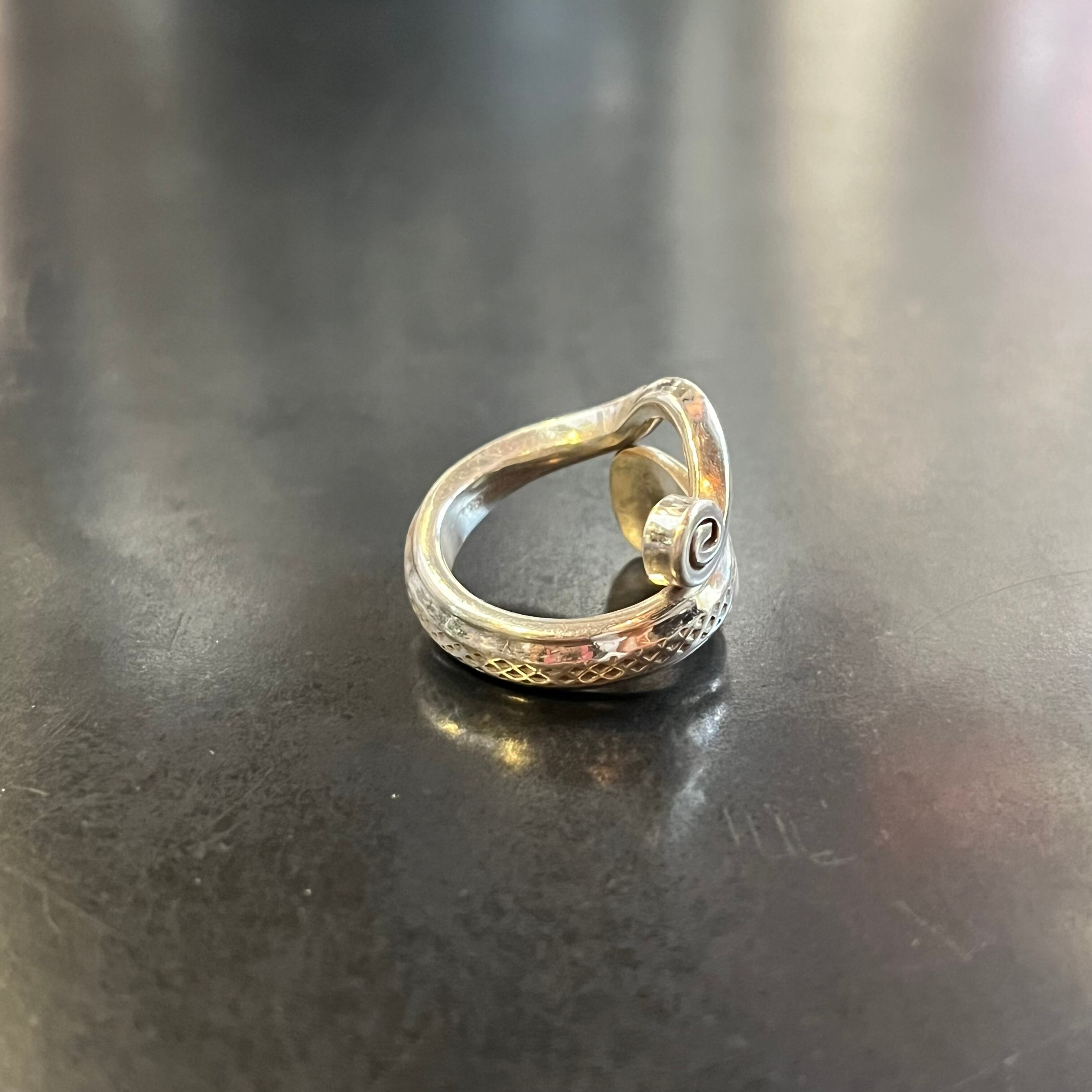 海外で買い付けたスワールモチーフフィンデザインのシルバーリングです。