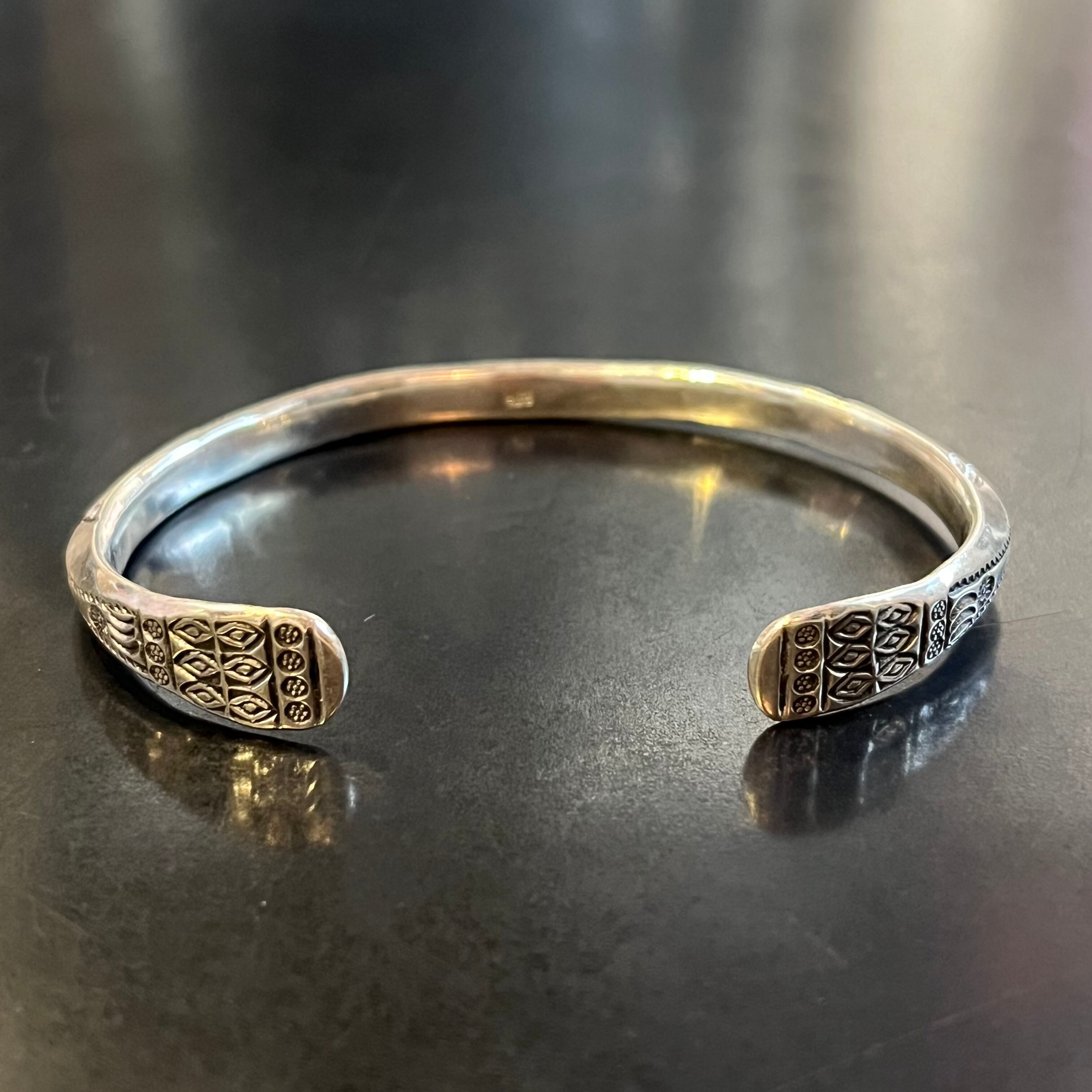 海外で買い付けたトライバルデザインのシルバーバングルです。