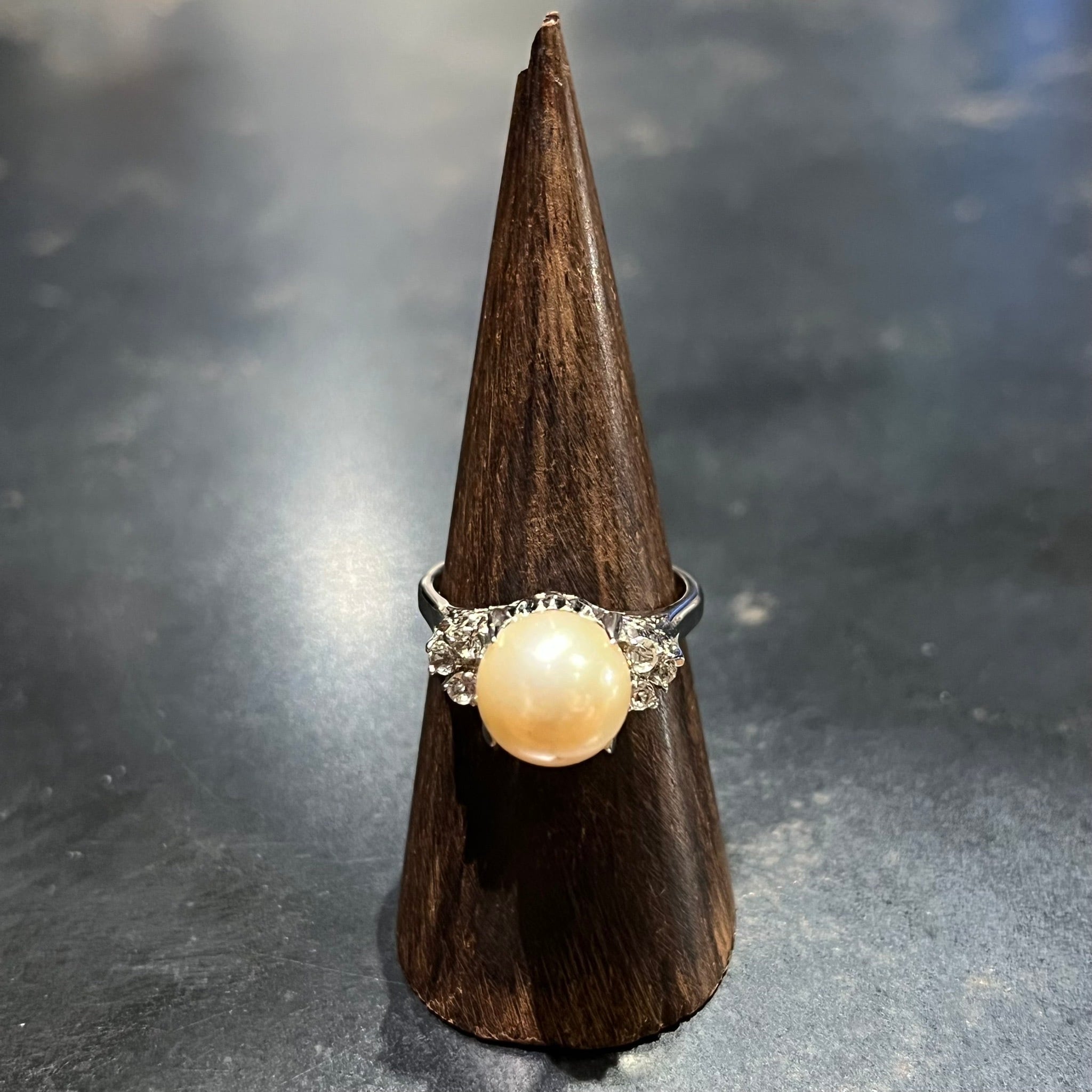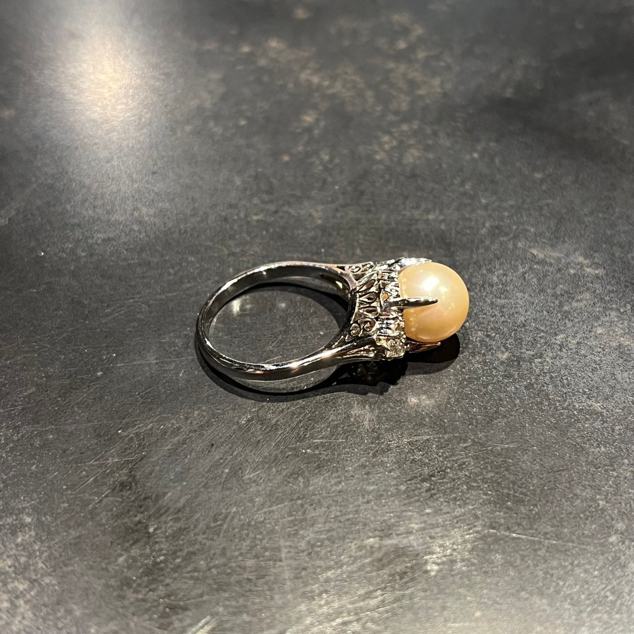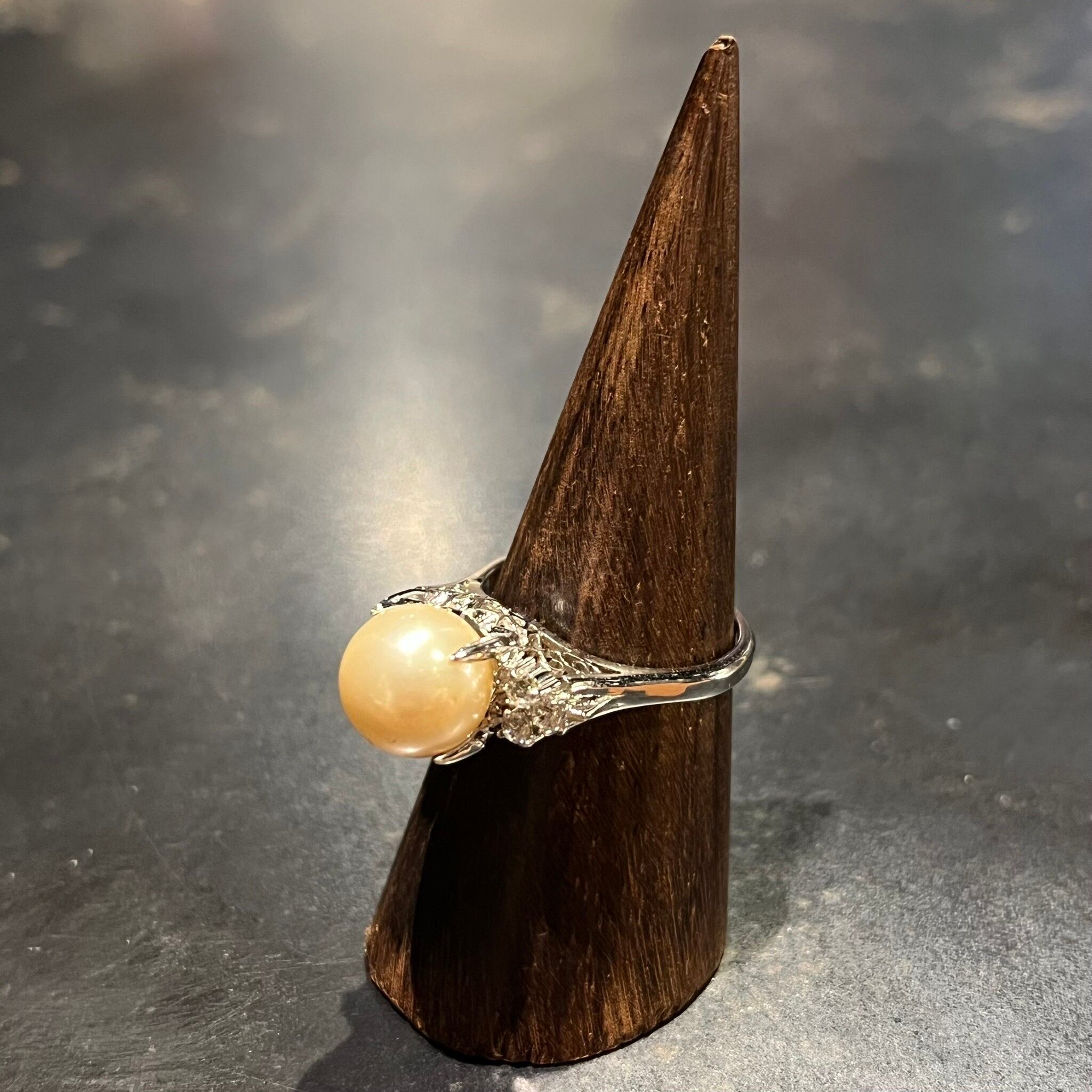 海外で買い付けたパールモチーフグリッターデザインのシルバーリングです。