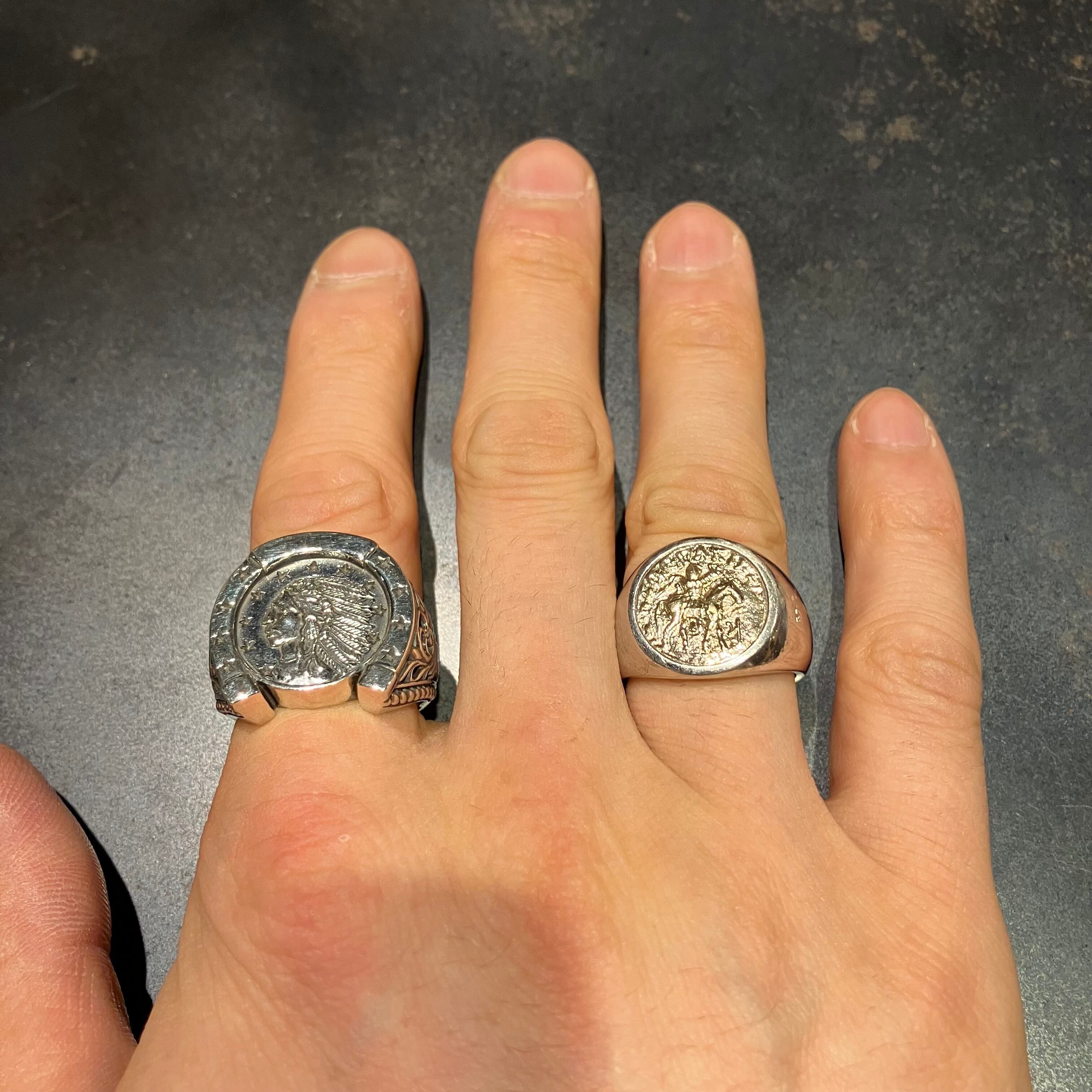 馬蹄リングの中央にインディアンがデザインされた面白い逸品です。