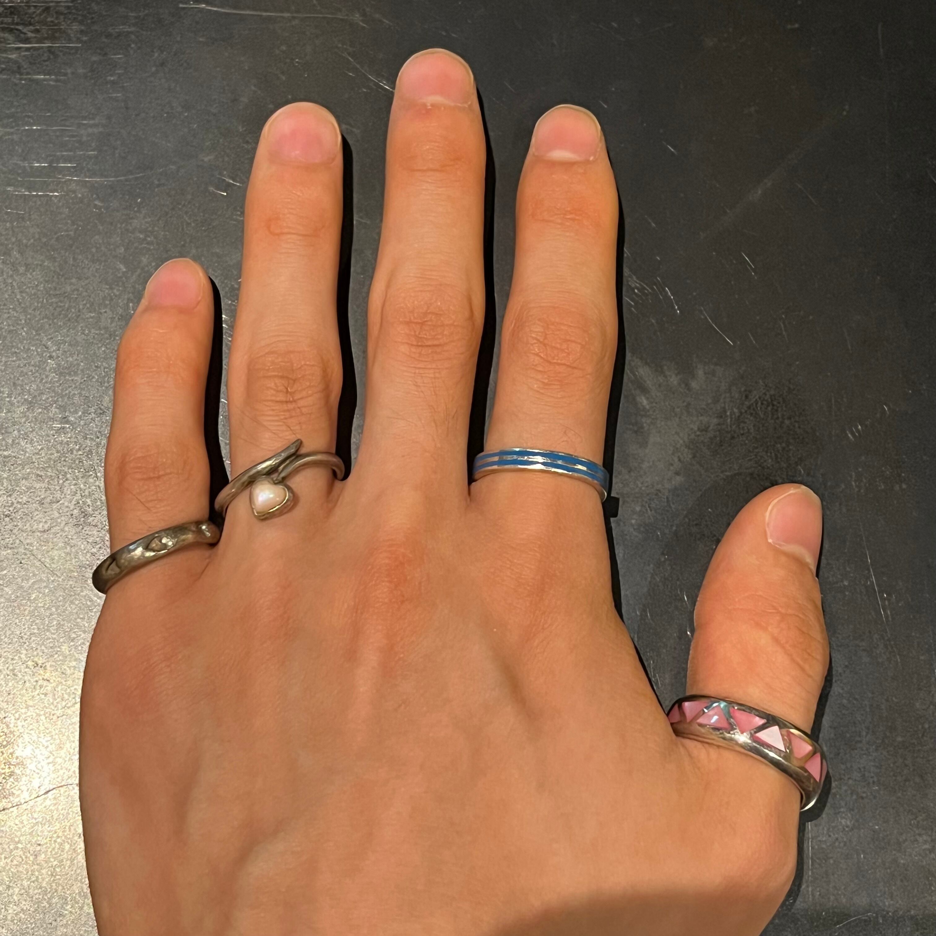 海外で買い付けたブルーインレイデザインのシルバーリングです。