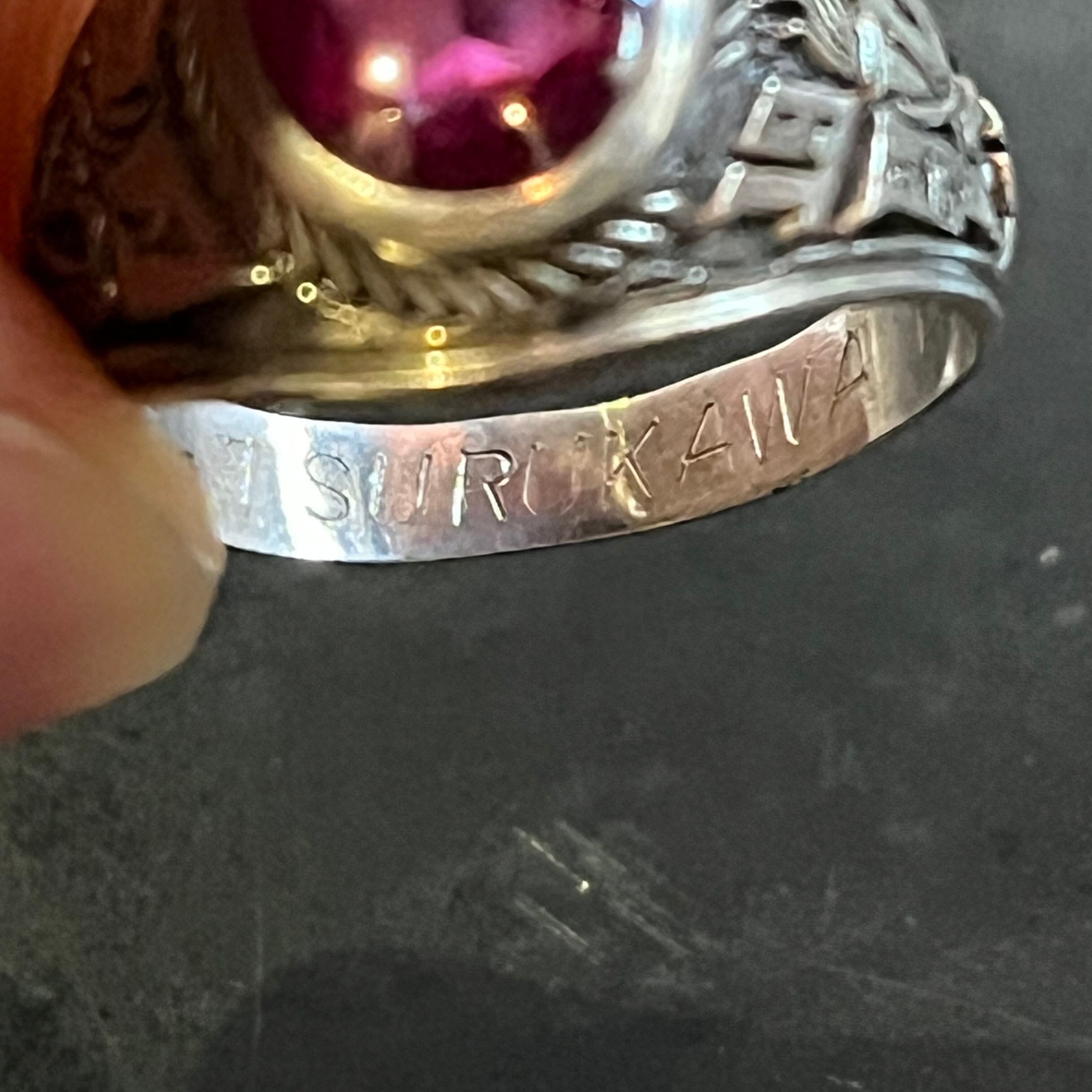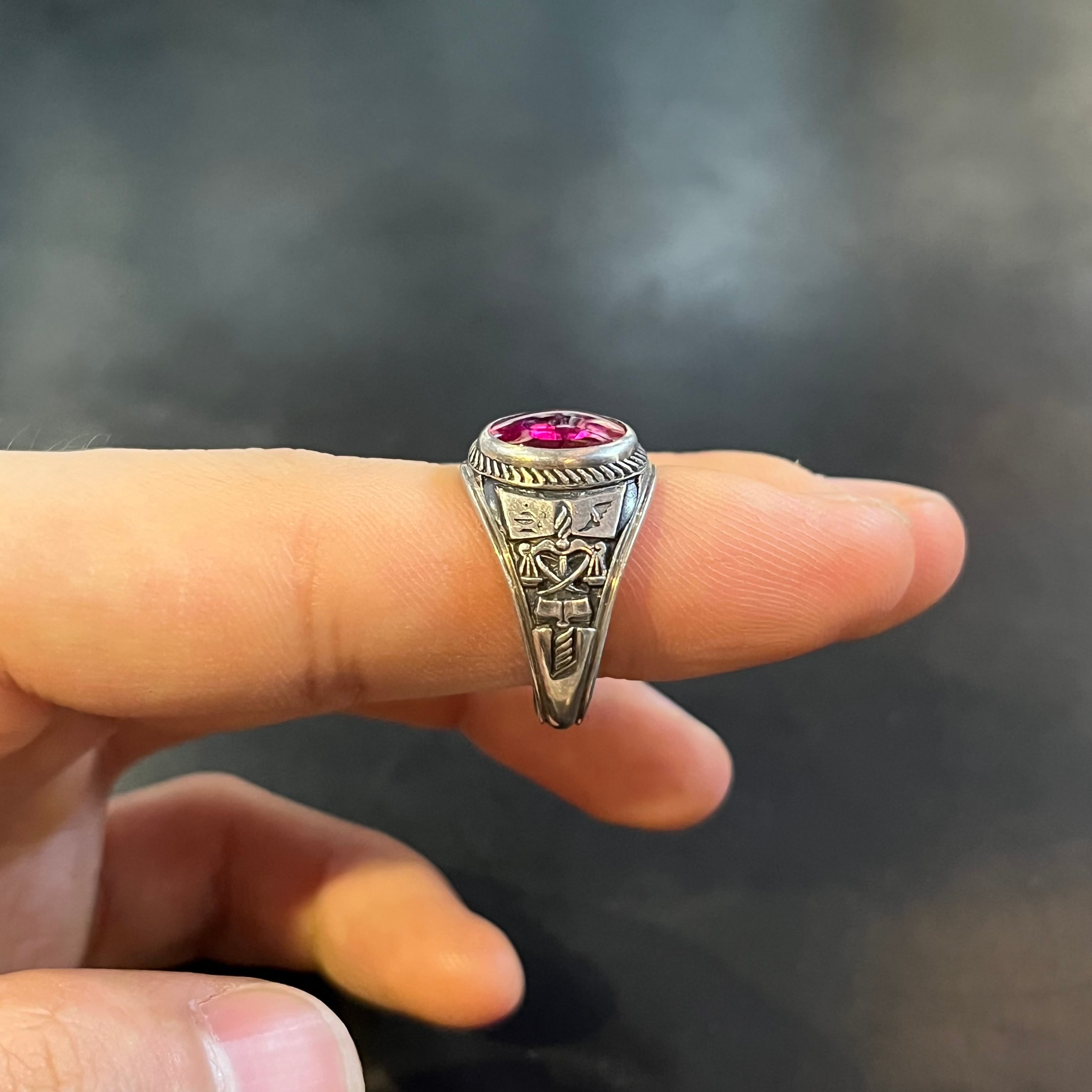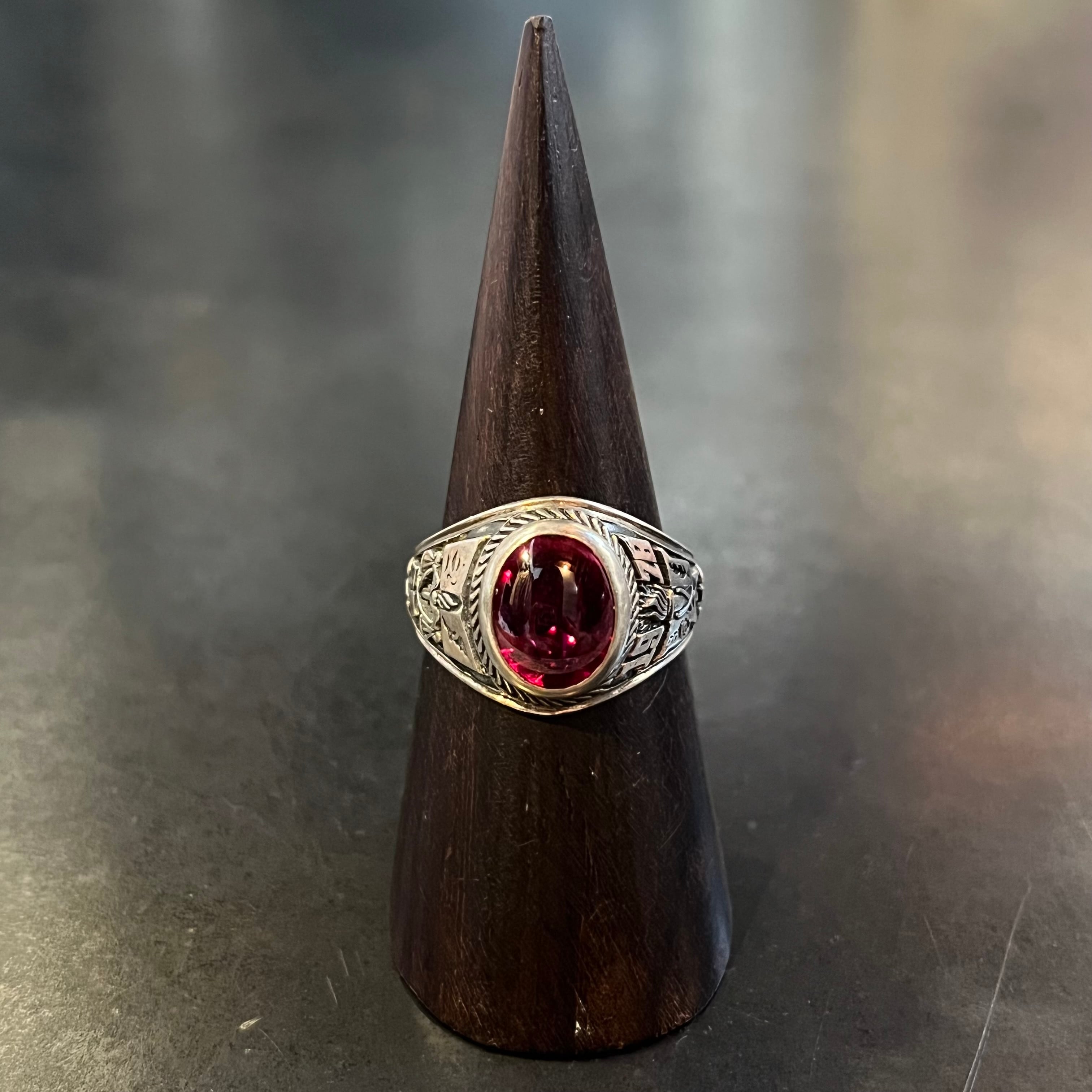 海外で買い付けたレッドストーントライバルデザインのシルバーリングです。